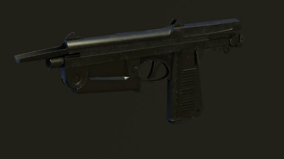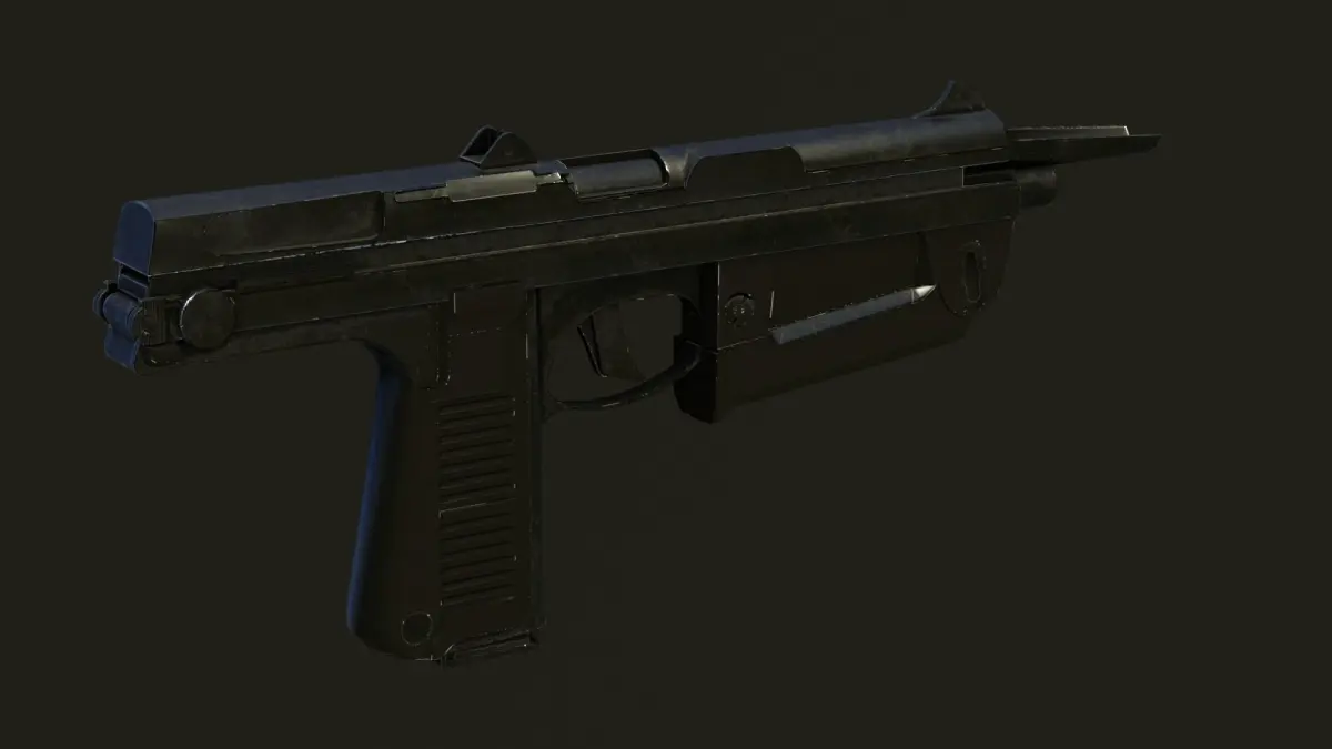 Low poly model of a PM63 submachine gun.Model has 4k set of PBR textures (Diff, metallic, roughness, normal, height).Model stats:Vertices: 2803Tris: 4941Poly: 2403