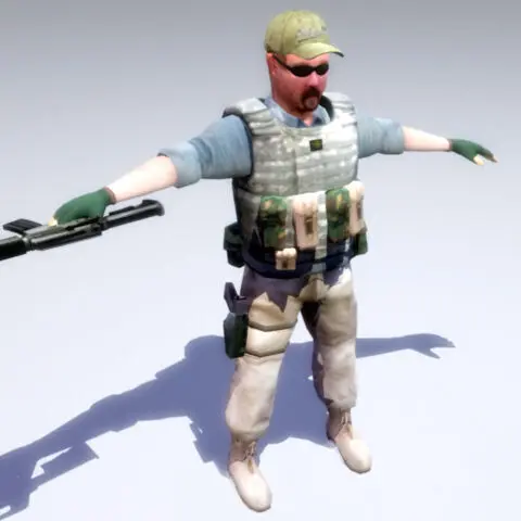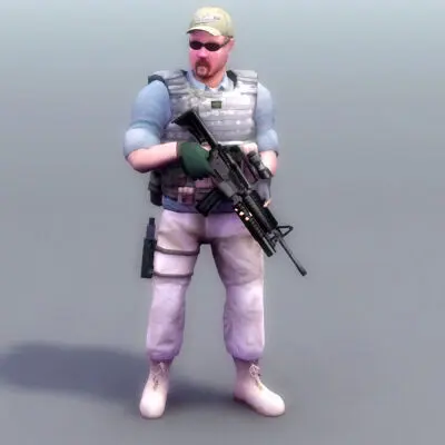 Private Military Contractor Mercenary Soldier. 3DSMax version is rigged, ready to animate. Other formats in T-Pose.