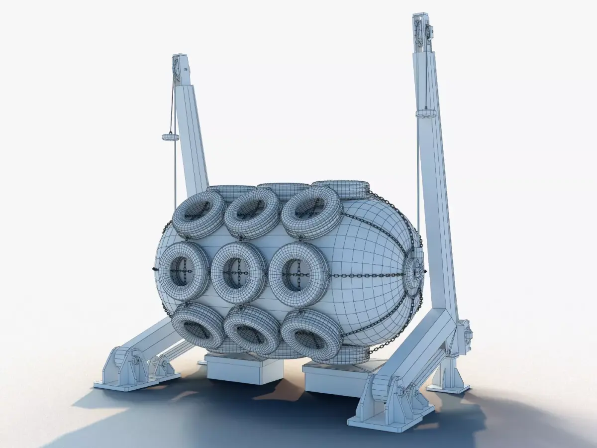 3D model of a large floating Pneumatic Fender with Davit.