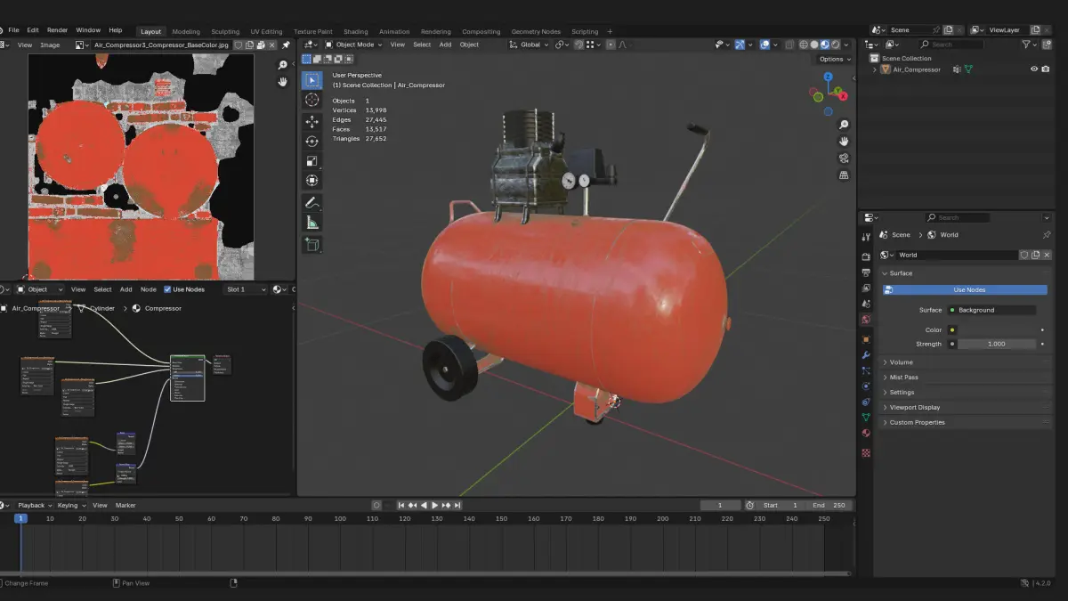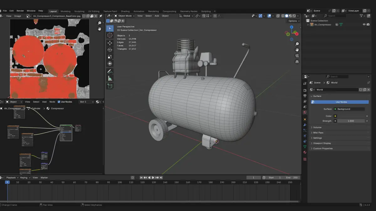 This is a game level realistic pneumatic air compressor 3d prop. Use it to add detail to your scenes.it is normal mapped. and uses Base colour, metallic, roughness workflow.