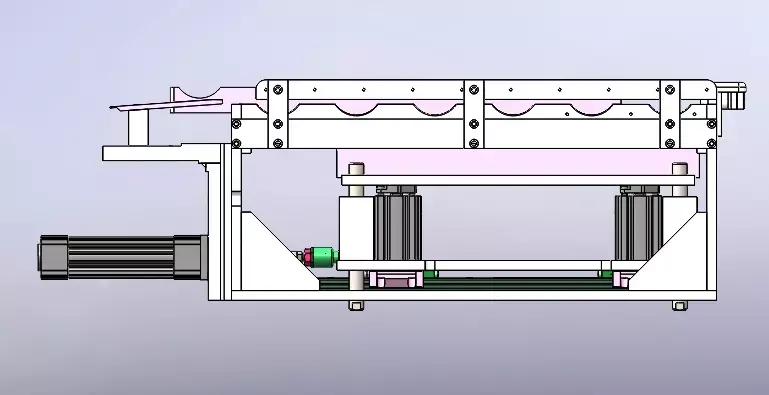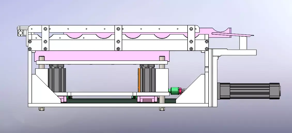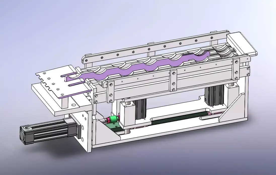 This is a pneumatic round bar feeder, an automated feeding equipment designed for bar processing, suitable for automatic loading and continuous feeding of round bars in lathes, machining centers and other machine tools. The equipment adopts a cylinder reciprocating feeding structure, realizing continuous step feeding of round bars through the reciprocating action of cylinder extension and retraction. It replaces manual operation, greatly improves processing efficiency and feeding stability, and is widely used in bar processing production lines in hardware processing, mechanical manufacturing and other industries.The equipment is equipped with arc-shaped profiling clamping grooves to stably clamp round bars, ensuring coaxiality during feeding. The core power comes from multiple pneumatic cylinders, which drive the clamping mechanism to perform extension and retraction reciprocating motion to complete step feeding. It is matched with high-precision linear guide rails to ensure smooth movement and feeding accuracy. The integrated frame, safety limit structure and simple pneumatic control system ensure stable operation, low failure rate and easy maintenance of the equipment.