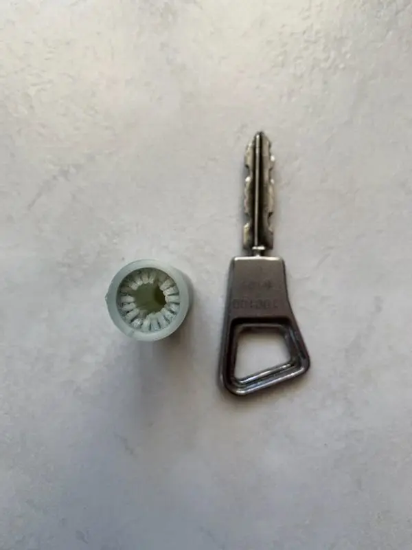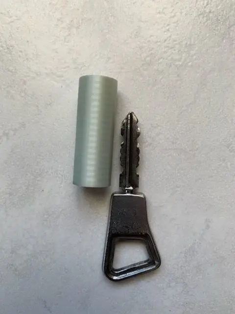 If you have keys like the one in first picture, you probably have holes in your pockets.This little tube can save them. You will notice that the small spikes inside ensure that it will stay in place.I designed them big enough to be robust. and thin enough that they don’t wear out too quickly when you remove the key to open the door.I printed it using flexible filament, but you can use regular PLA. The spikes will just wear faster.