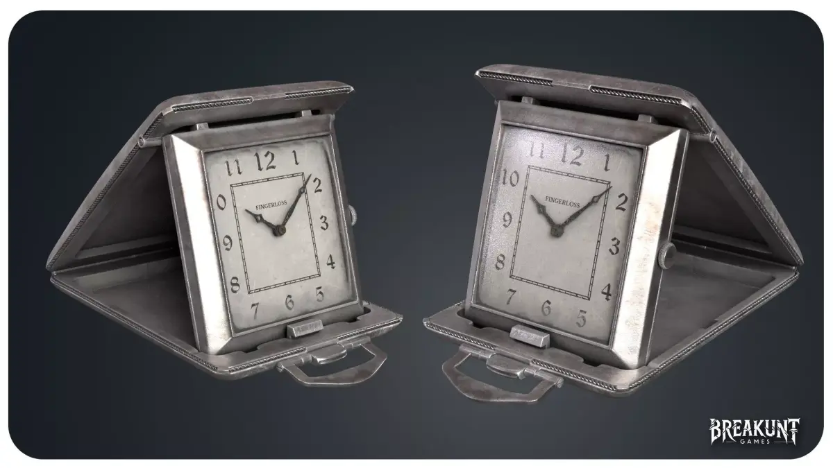 Bring authentic early-20th-century atmosphere to your scenes with this highly detailed set of twocompact folding travel clocks, inspired by classic 1900s bedside and carry-case designs. Each modelfeatures crisp metal bevels, subtle wear, readable dial details, and a protective case silhouette thatlooks great in close-ups.Ideal for: period interiors, detective investigations, abandoned hotels, Victorian / Edwardian sets,cinematic rendering, and any project needing a believable timekeeping prop.