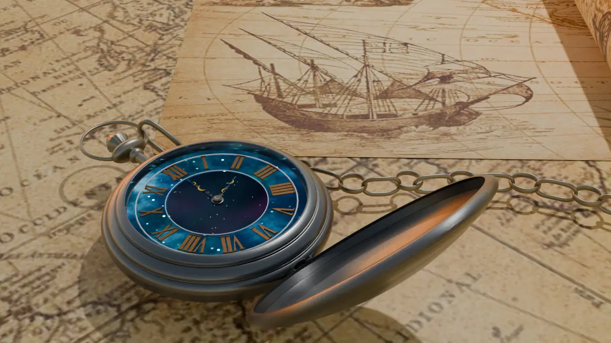 Antique Pocket Watch with Nautical Map – High-Quality 3D Model