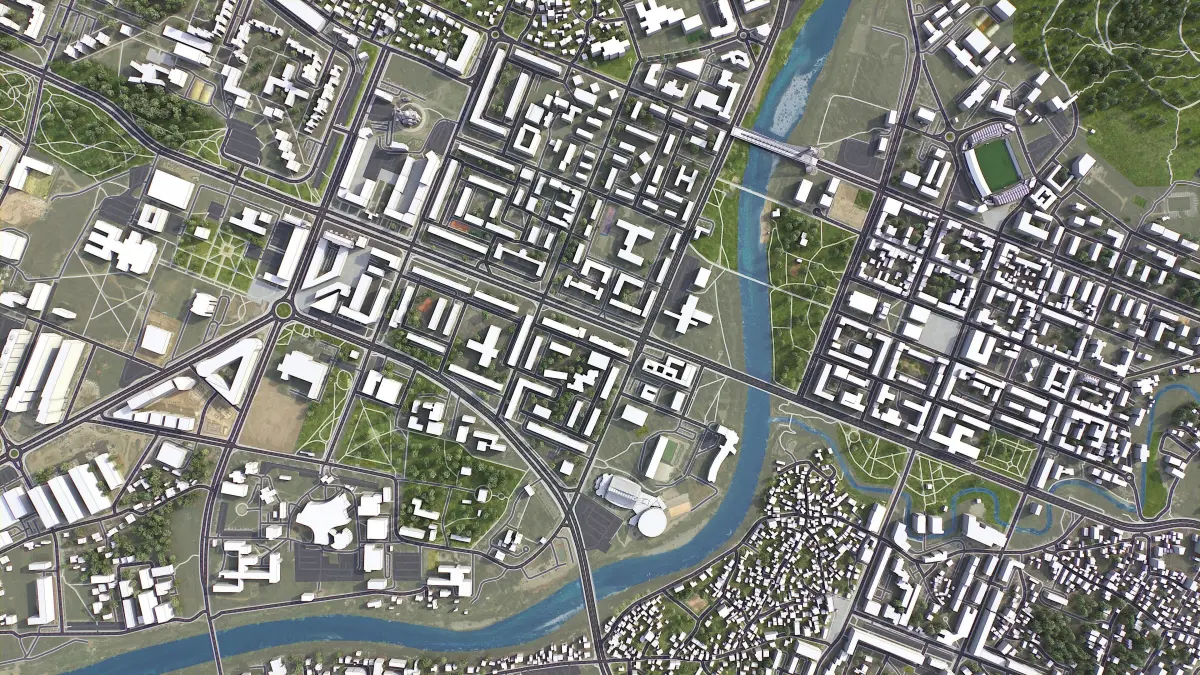 - Full city extents up to 100 x 100 km — or crop to an area of interest for better format compability and scene performance
