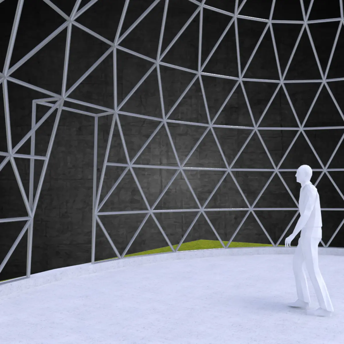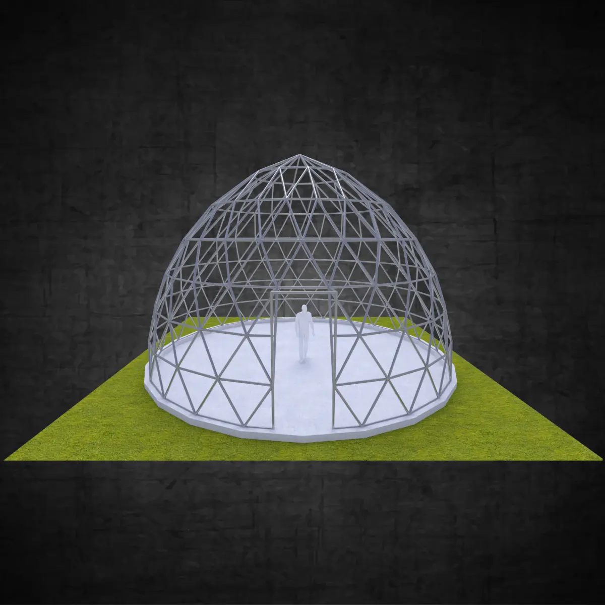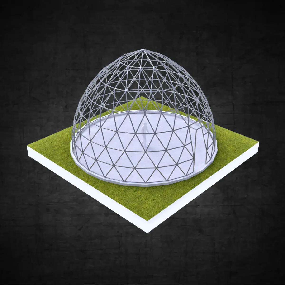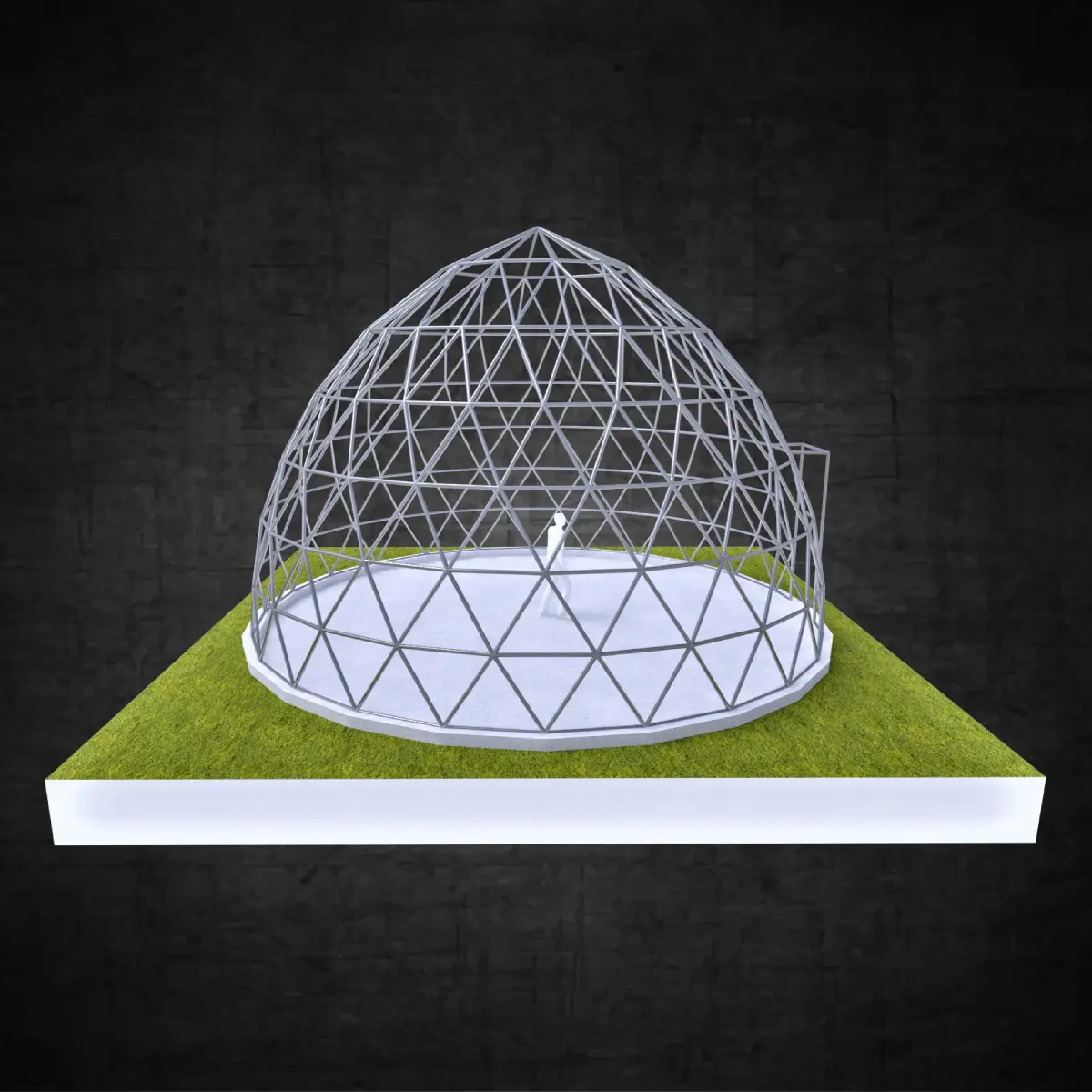 Pointed dome geodesic triangulated structure wire frame struts Low-poly 3D model