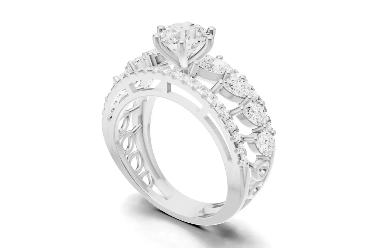 Pointer Diamond Engagement Ring With Pear Diamond Band Style 3D print model