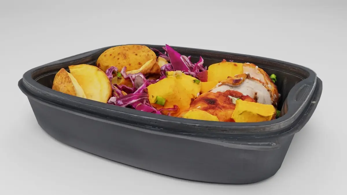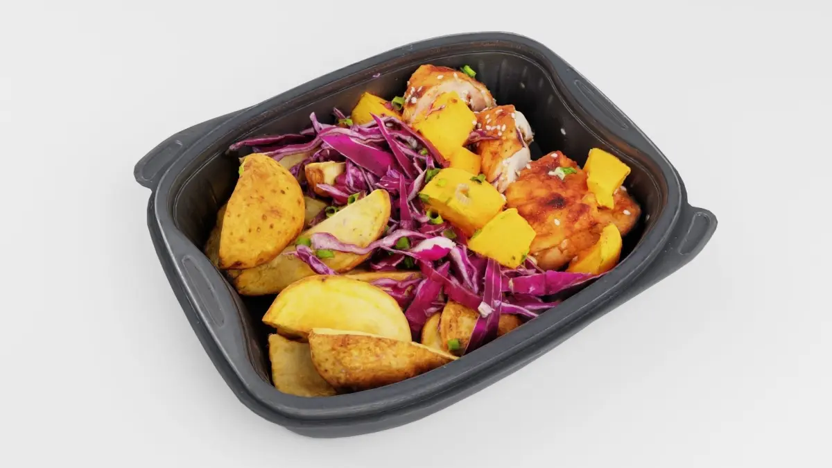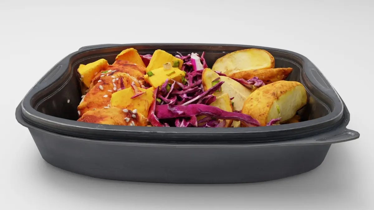 Poke bowl lunch box with cabbage chicken potatoes