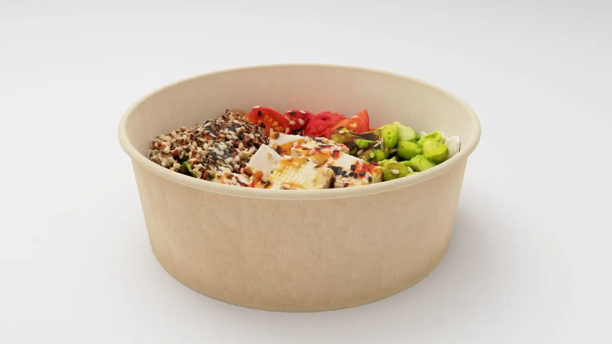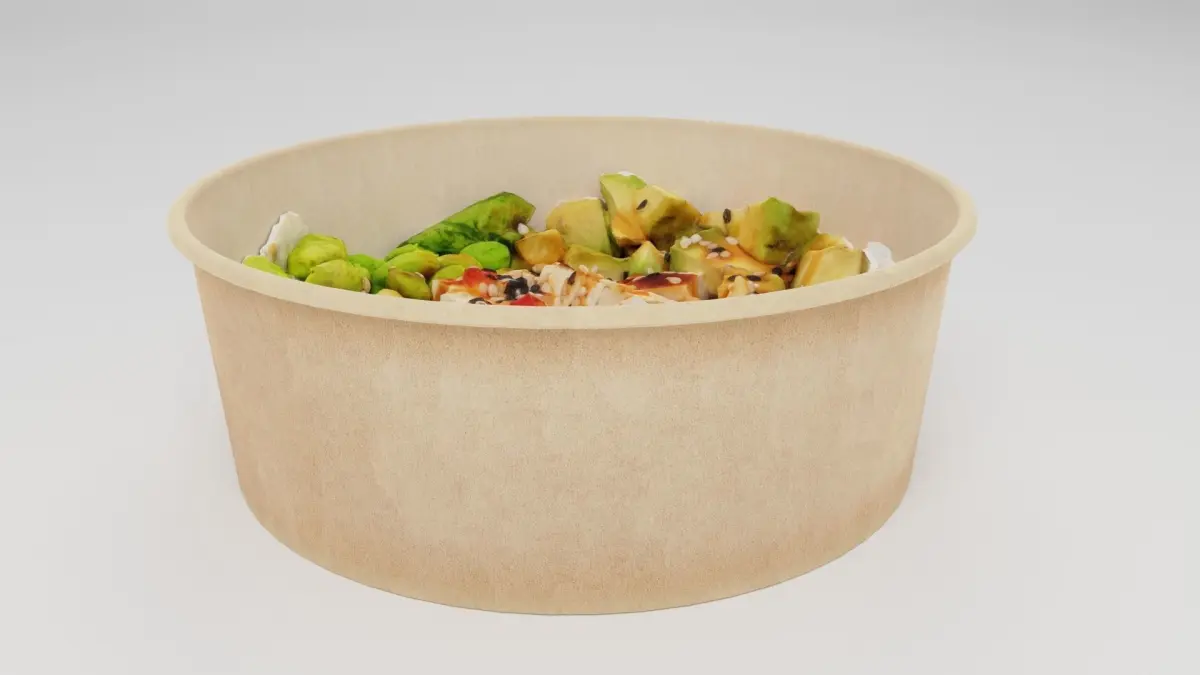 Poke bowl lunch with eggs cheese avocado tomatoes