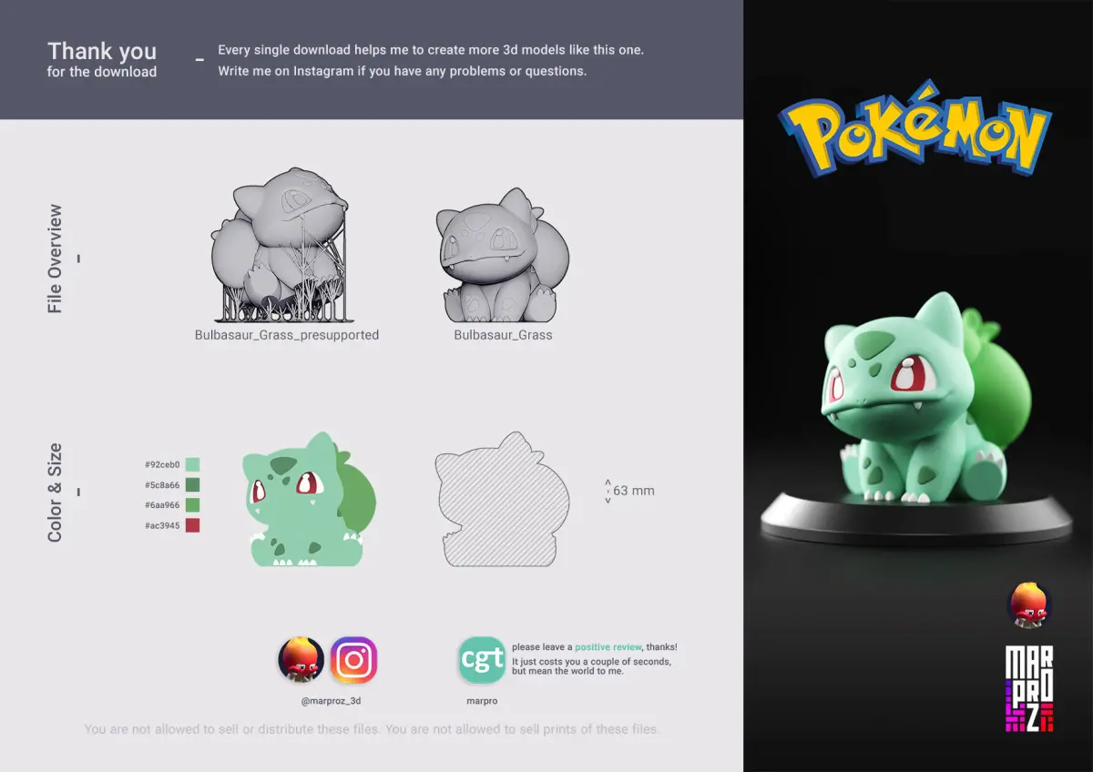 I hope you have as much fun printing them as I did create this Figure of the Pokemon Starter! And if you like this model don't hesitate and click that like button and write a comment!