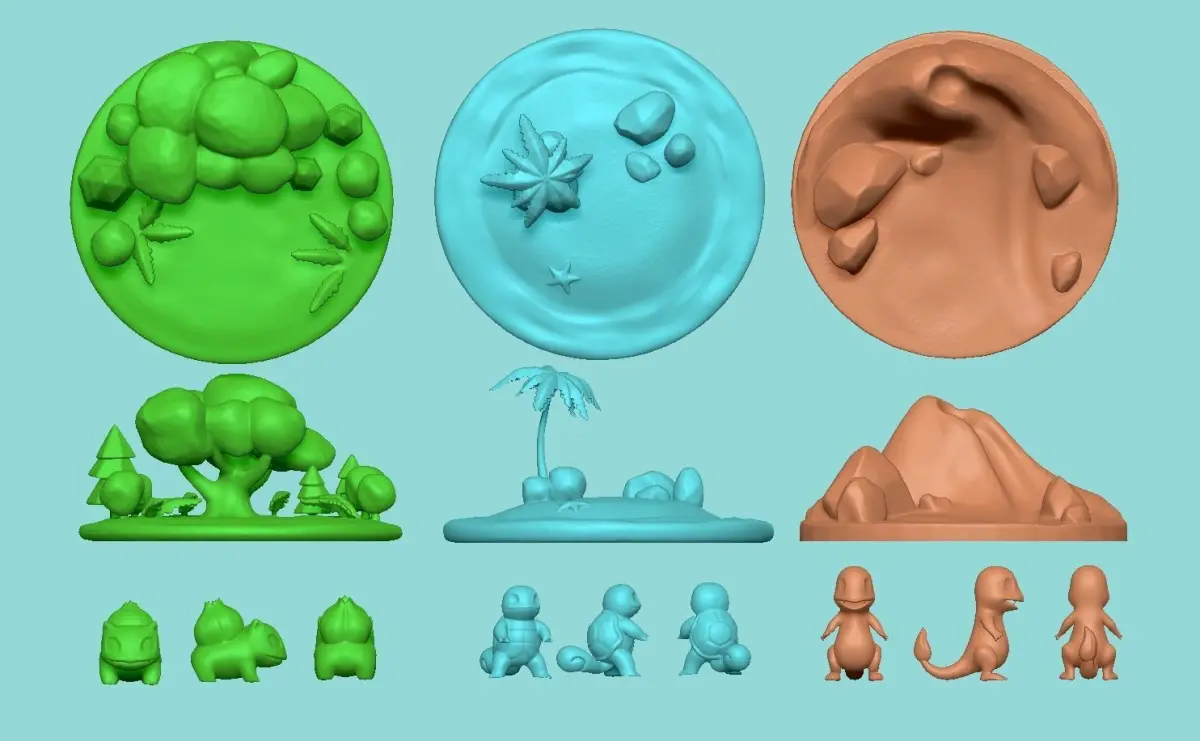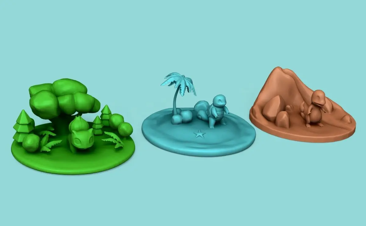 3D Printable Pokemon Islands - Bulbasaur (nature), Squirtle (water), Charmander (fire)A great collection for decorations.Stay updated, soon more pokemons will be added in my profile.