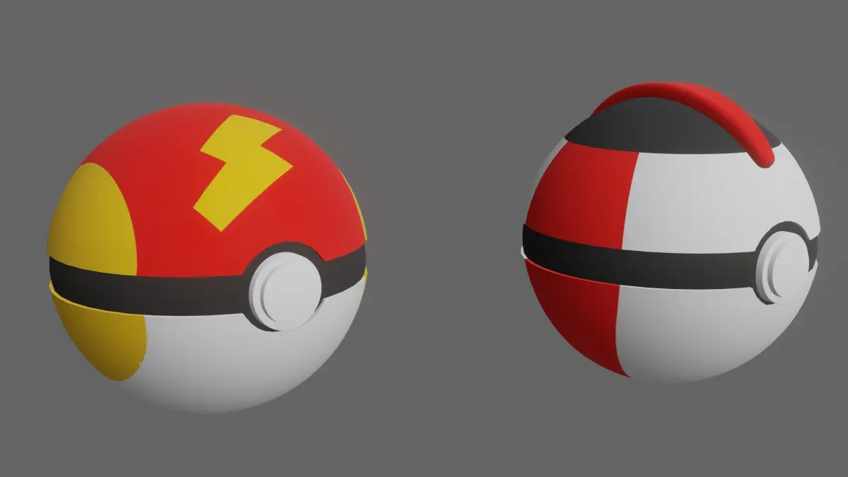 Pokemon lowpoly pokeballs 3D models ready to use as prop, includes: Heavyball, Safariball, Parkball, Sportball, Fastball and Timerball. Made in Blender and rendered with Eevee.