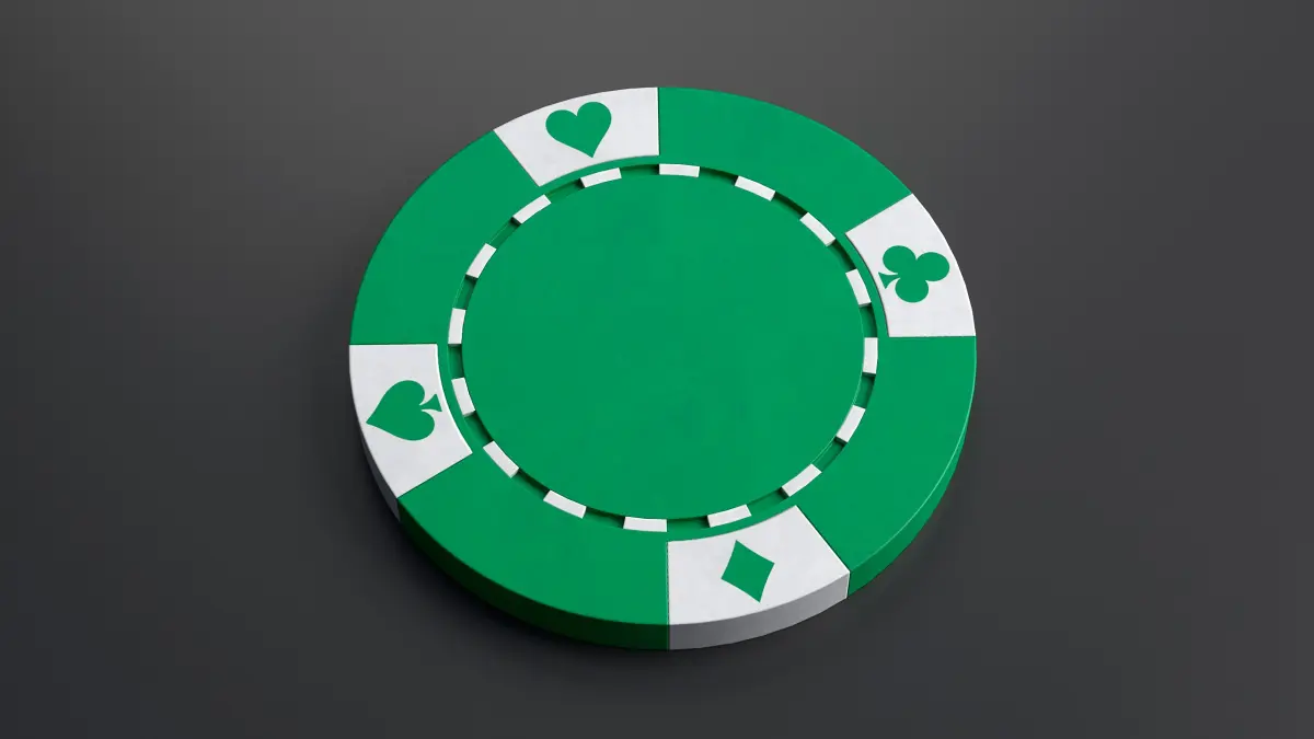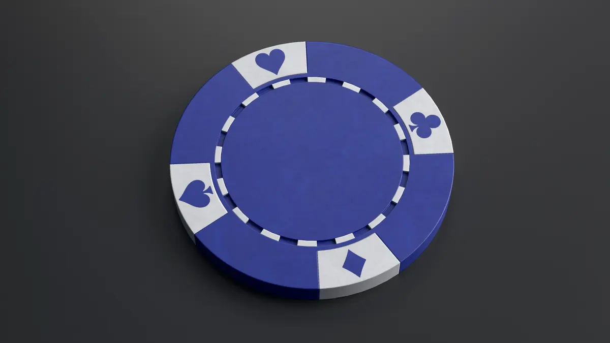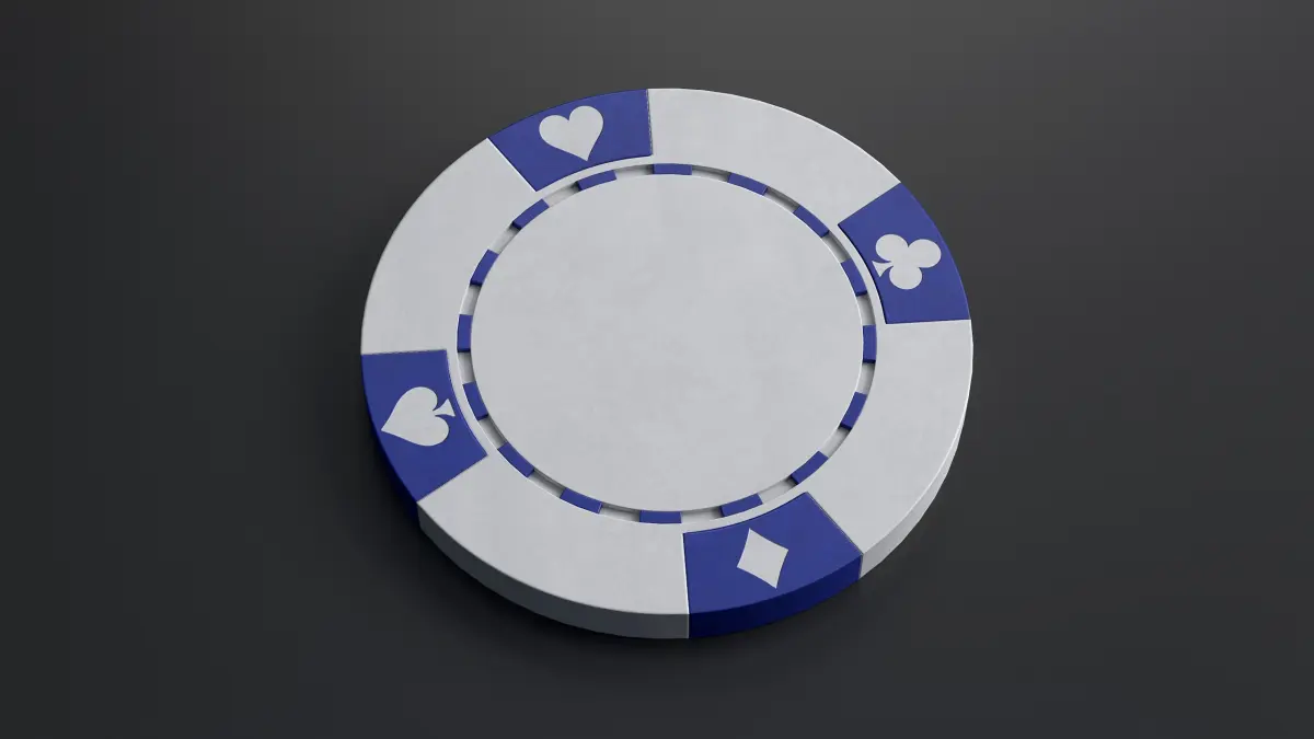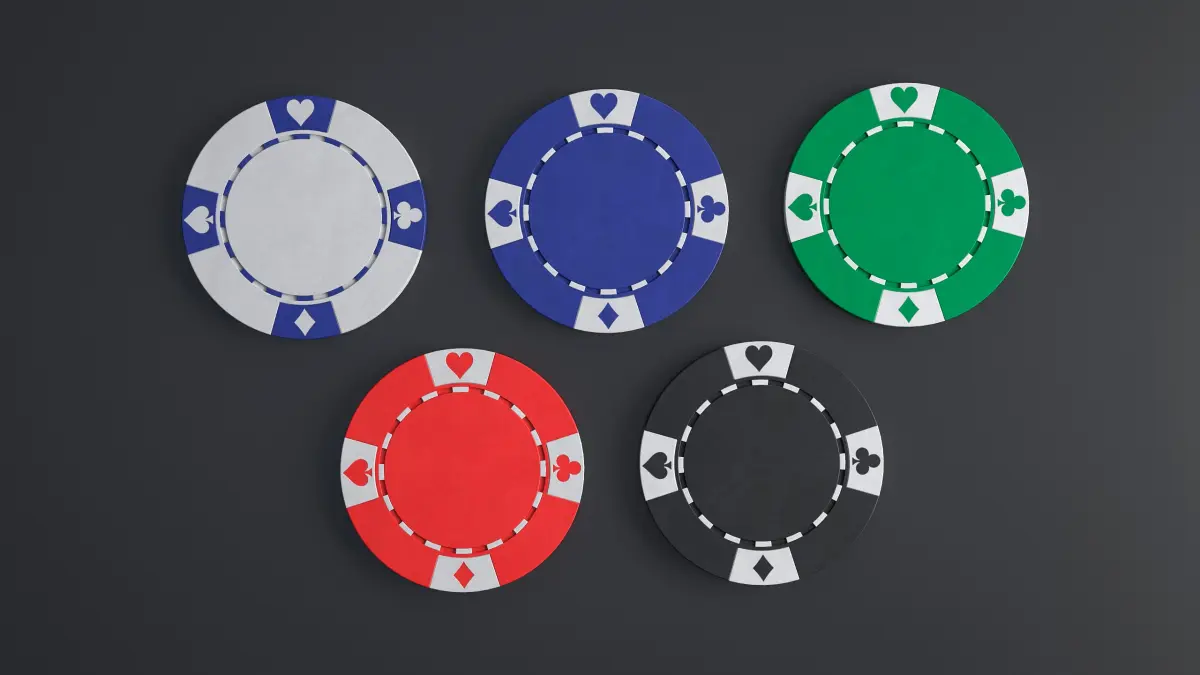 Low-poly 3d model of a poker chip with PBR textures in white, blue, green, red and black colors