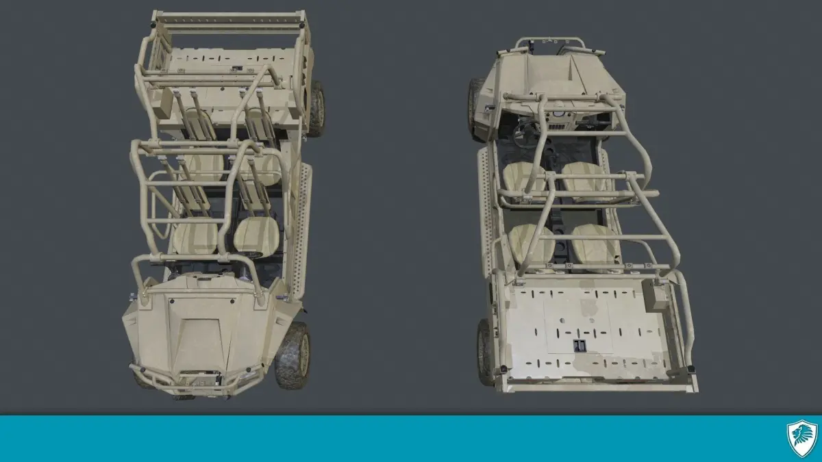 Polaris Defense’s Military version of the Polaris RZR XP 4. The MRZR 4 is a four-seat, ultra-light tactical vehicle that is powered by a 88HP 875CC Polaris Prostar engine. The MRZR 4 has a tool-less collapsing roll-cage to make it quickly CV-22 drive-in capable.