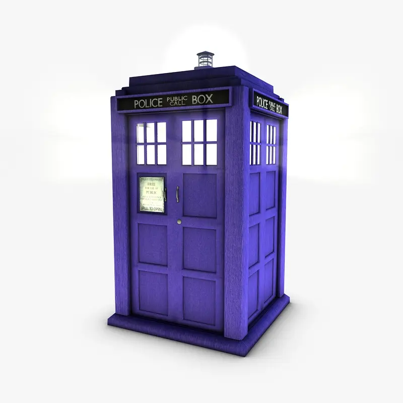 3d model of a police box (The Tardis). Perfect for games, scenes or renders.|| TEXTURES ||Models includes high textures with maps:DiffuseBumpNormalSpecularAll textures are UV mapped for easy editing. High resolution (4096x4096 pixels).|| GENERAL ||Easy editable.Uv mapped.Model is fully textured.No cleaning up necessary, just drop model into your scene and start rendering.No special plug-in needed to open scene.|| INFO ||Vertices: 3898Polygons: 3393All formats have been tested and work correctly.Obj, 3ds, fbx files may need textures adjusted or added depending on the program there imported into.
