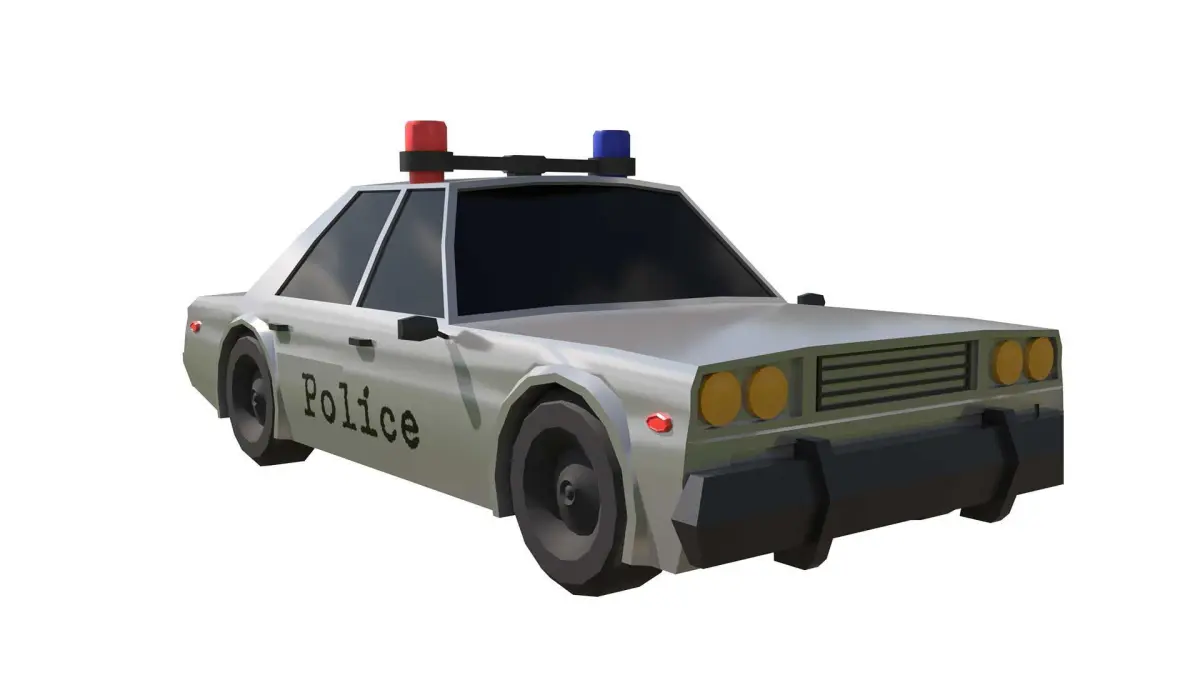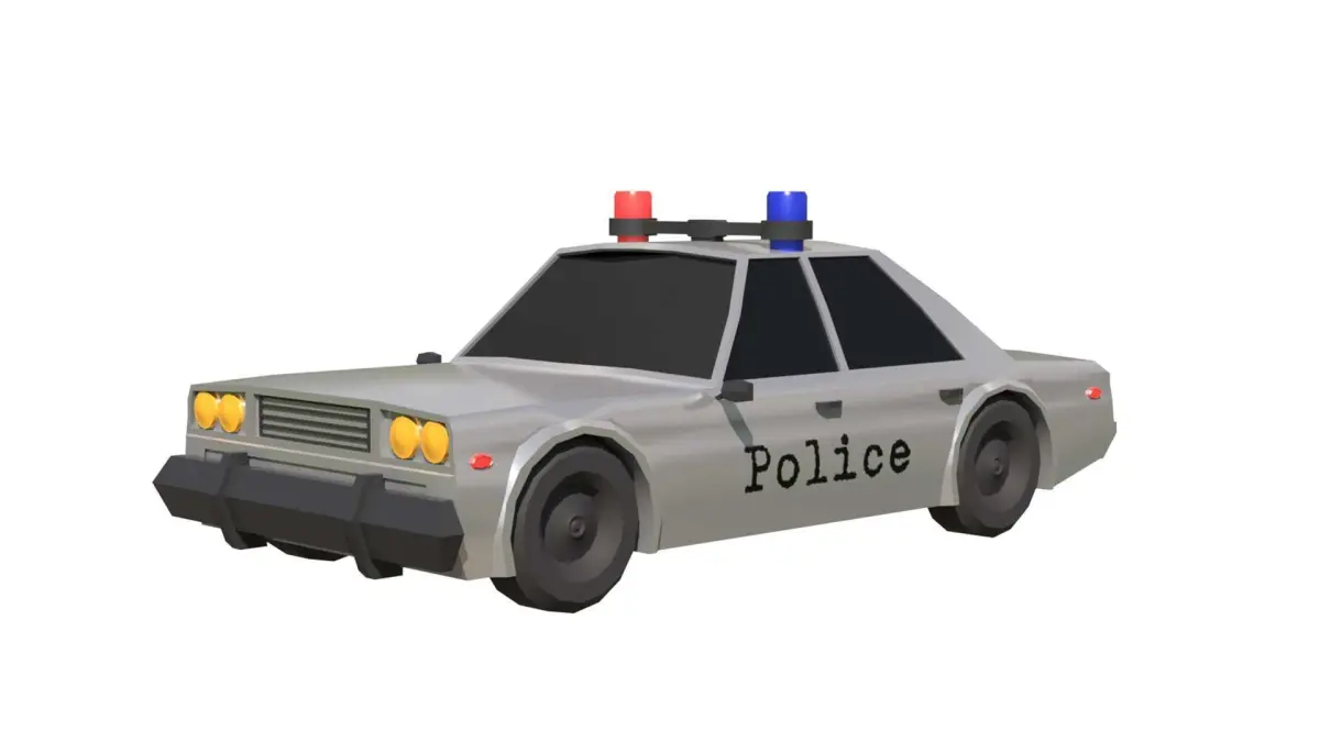 The cartoon police car 3D model is a nicely detailed representation of a law enforcement vehicle. It features a sturdy, authoritative design perfect for VR and gaming. The light bar on the roof has clear blue and red lights. The wheels are designed with precise detailing, including strong rims and tires built for high-speed chases. Tinted windows add to the realistic look.