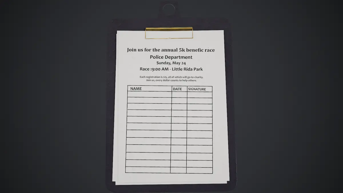 This package includes a game-ready set of police documents and papers, designed with optimized geometry and high-quality PBR textures. Ideal for games, VR/AR projects, and real-time environments.