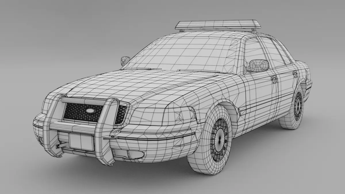 Mid poly police car model, suitable for 3D projects and as a game asset. UV unwrapped with textures included for the model. The windows and headlamps are materials and don't come with textures.