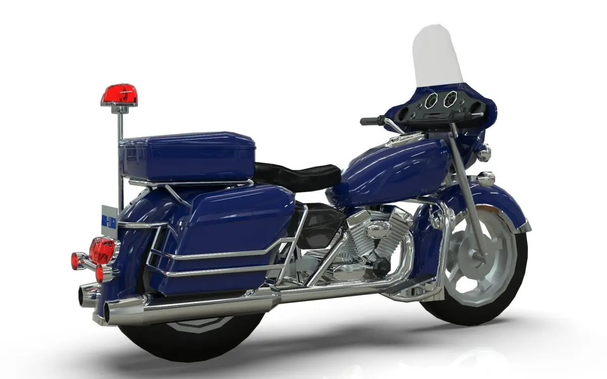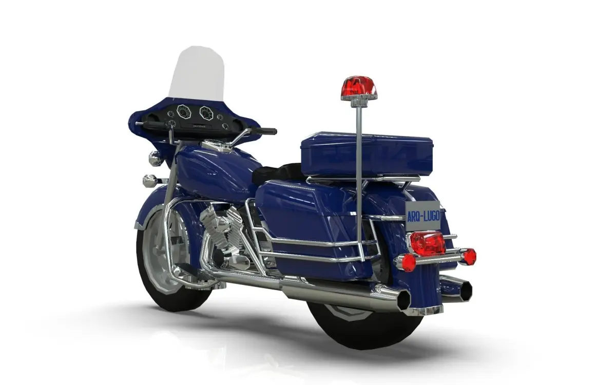 Lowpoly Police bike, clean topology, blender 3.6 modeling, Vertices: 8394, Edges: 16141, Faces: 7850, Triangles: 14433.