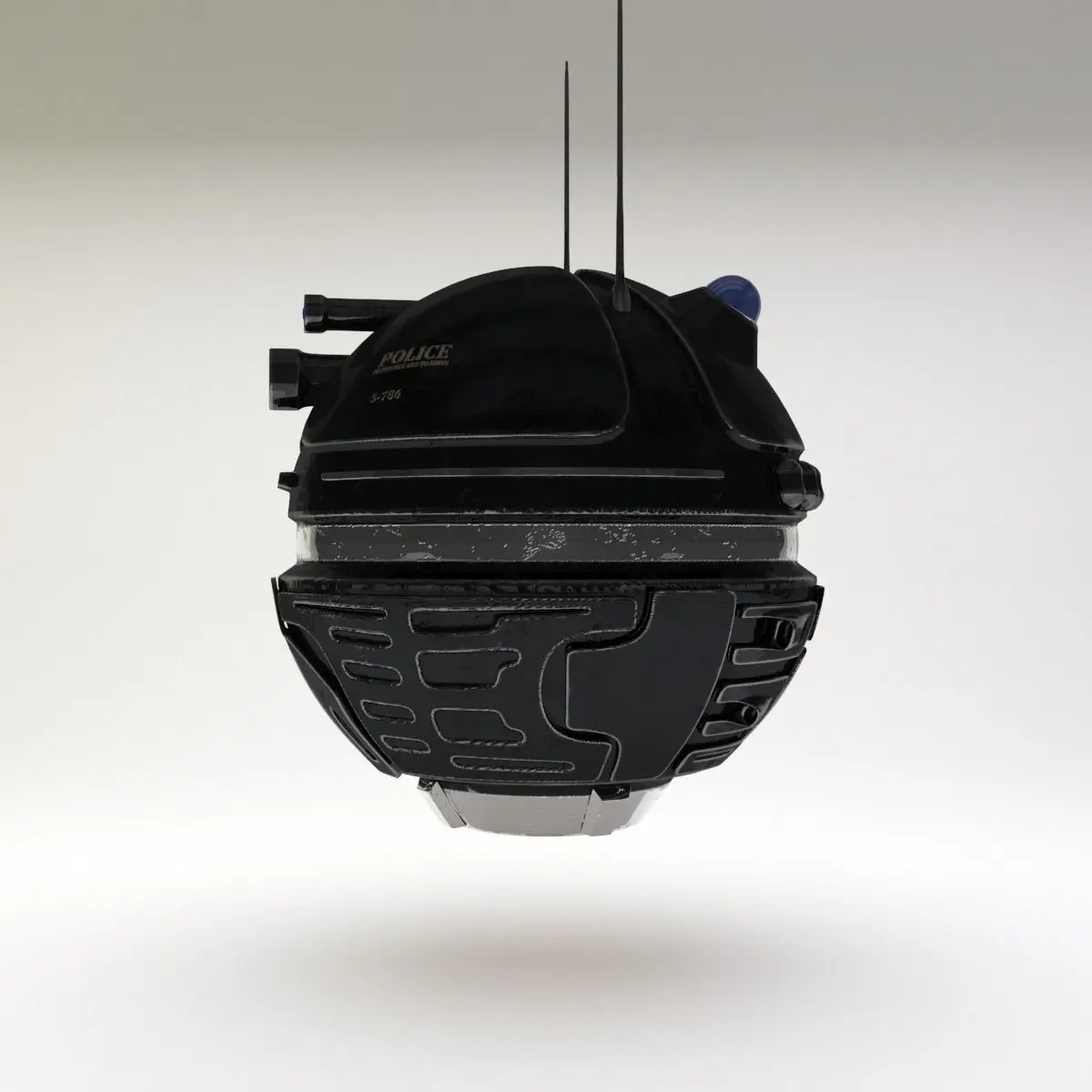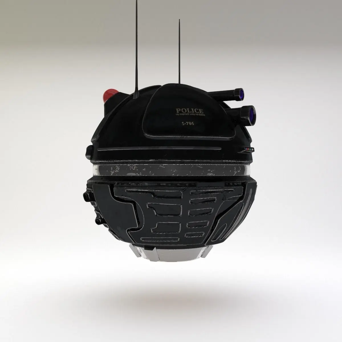 Police Probe robot inspired by the Star Wars interrogation droid. It is a highly detailed, high poly model. Rendered with V-Ray using 4K texture created in Substance Painter
