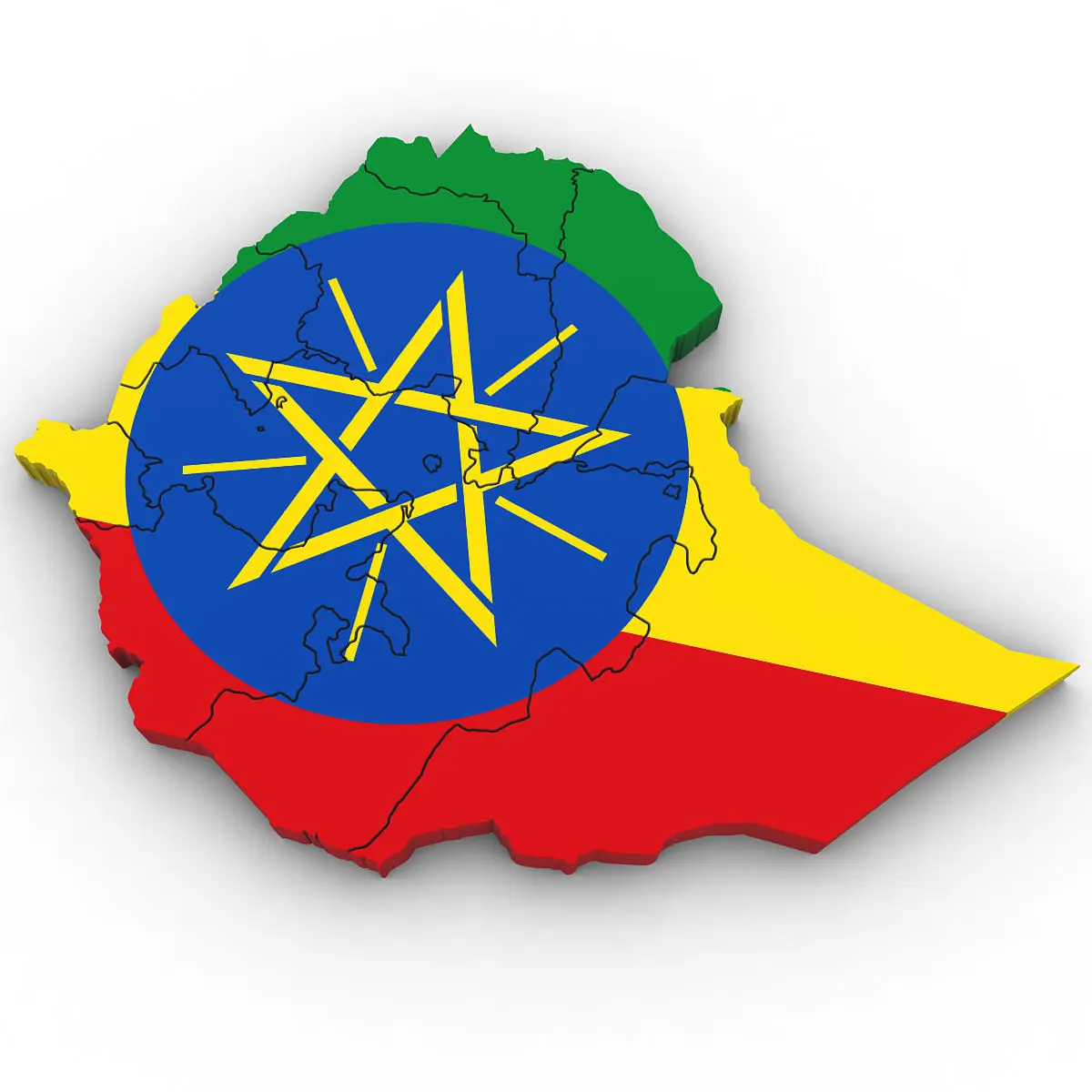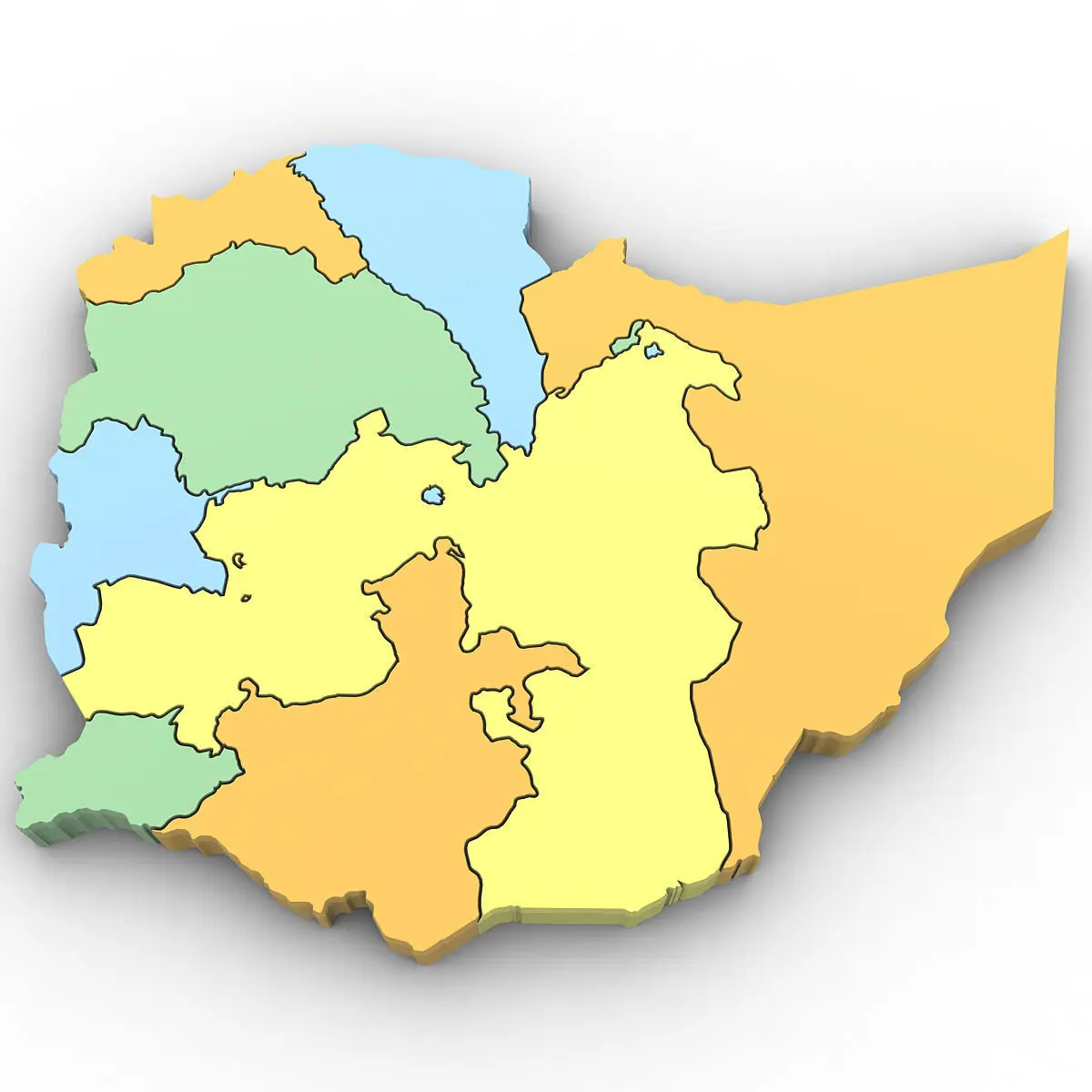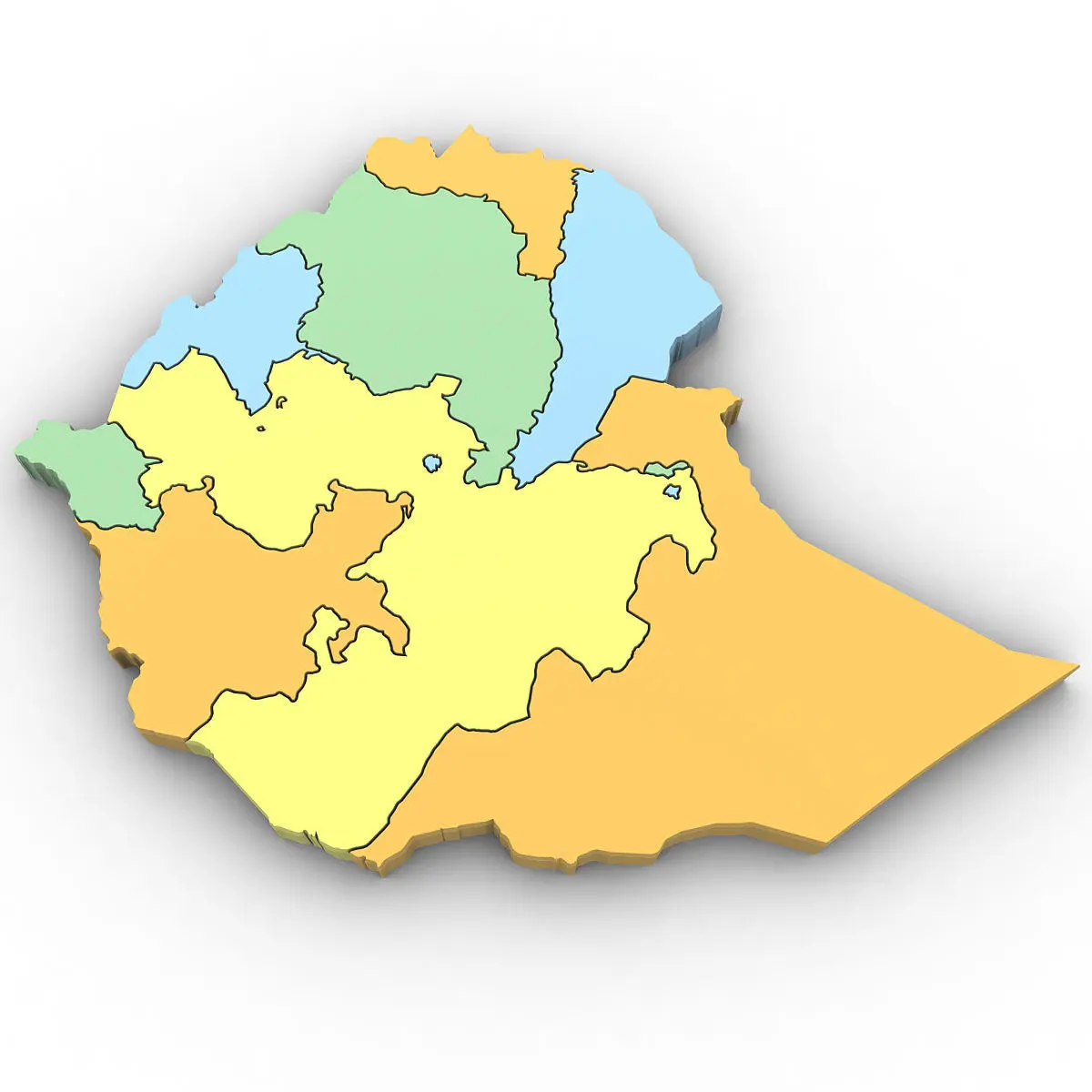 High poly 3d model of the map of Ethiopia. Includes all the regions of Ethiopia.