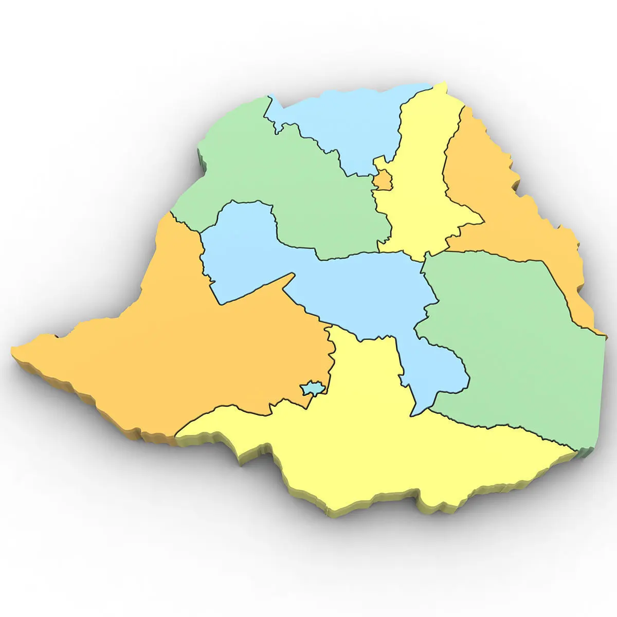 High poly 3d model of the map of Zimbabwe. Includes all the regions of Zimbabwe.