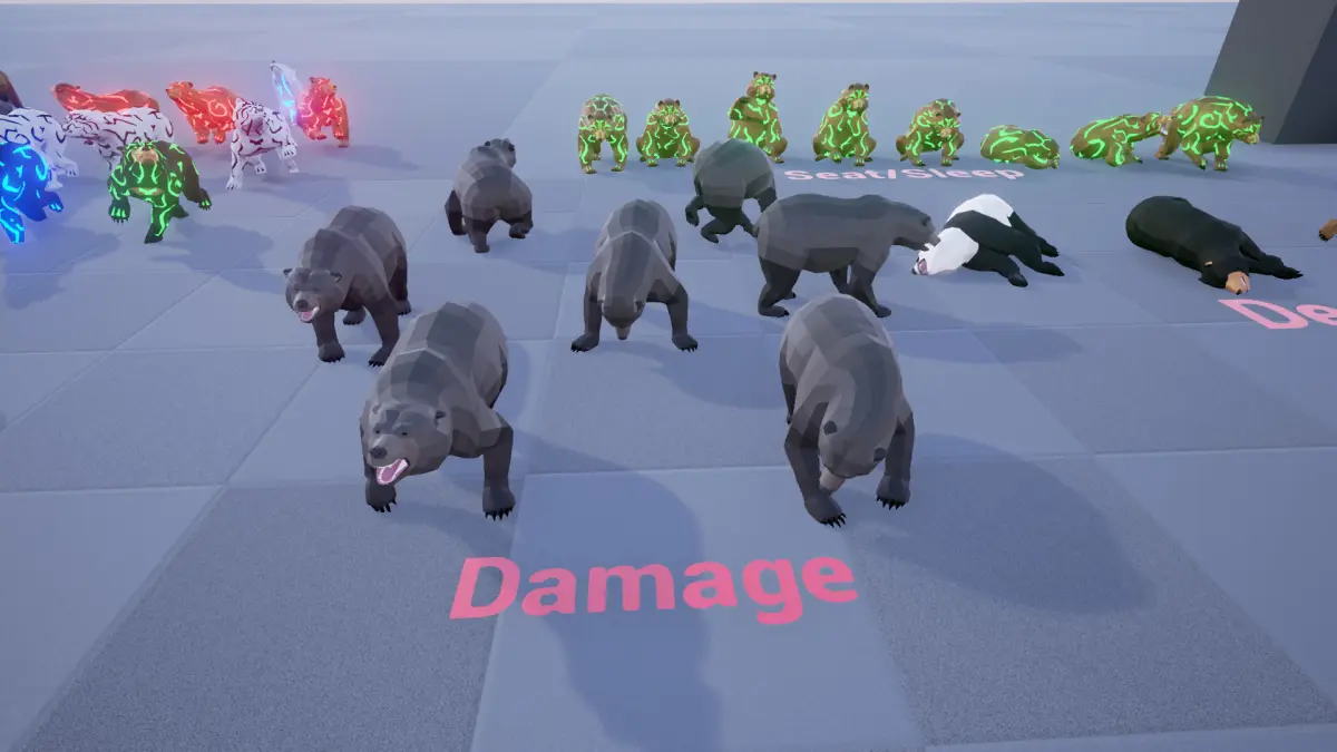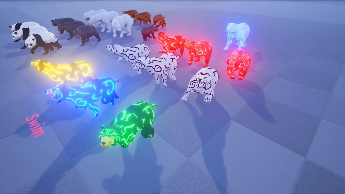 IMPORTANT . Include UnityPackage and Unreal Package .. They're so many amazing Low Poly Art Environments but is so sad that there's no wild life to populate them.. So here is some beautiful animals! (wolf) They come with +62 AAA Animations. 4 different Styles(polar, cub, black, grey, grizzly)Textures Easy to modify (128x64)