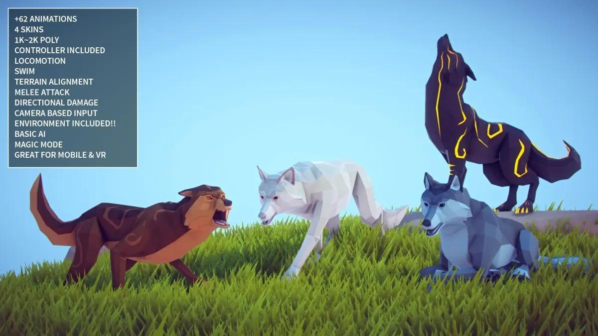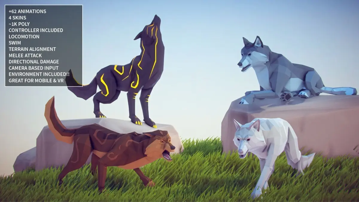 They're so many amazing Low Poly Art Environments but is so sad that there's no wild life to populate them.. So here is some beautiful animals! (wolf) They come with +62 AAA Animations.