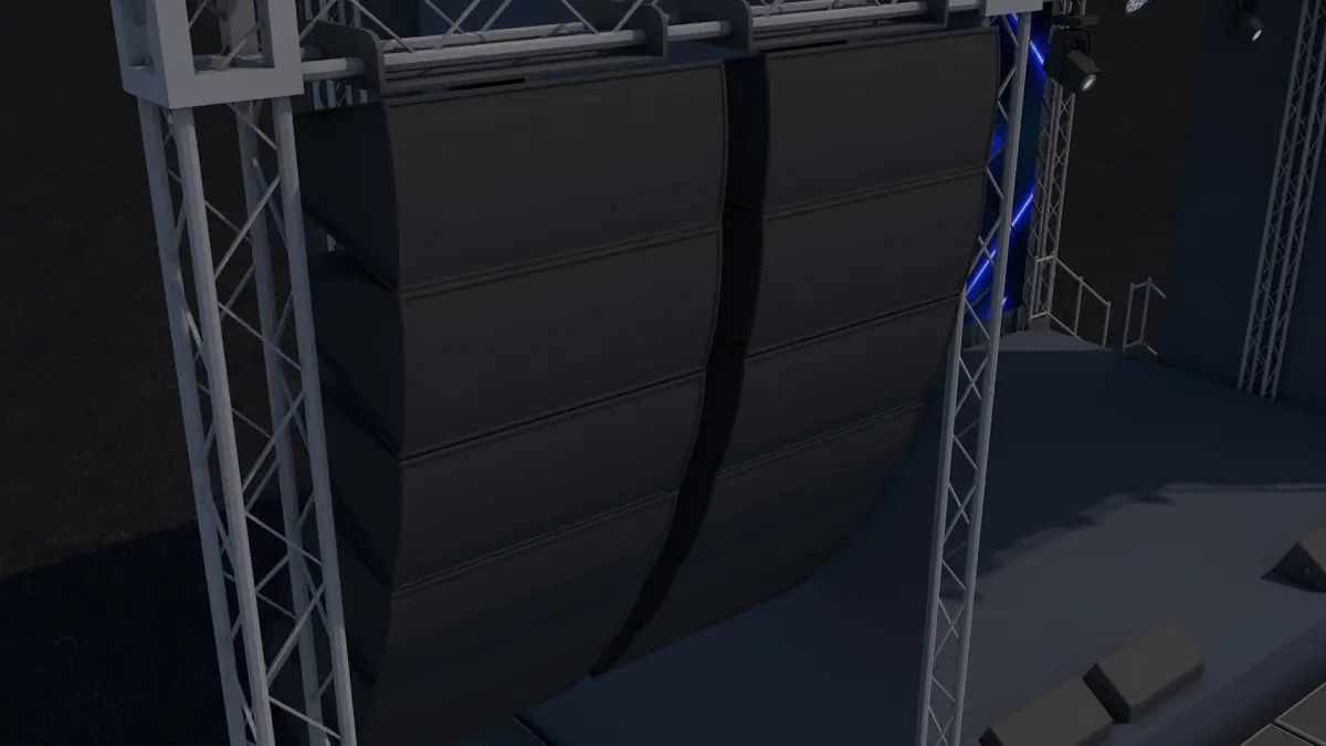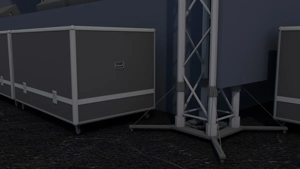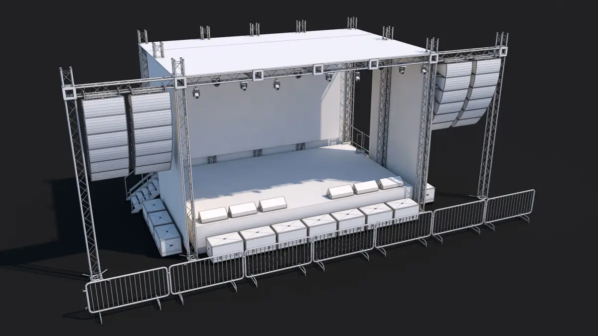 Items (x11):Hanging Speakers, Railing, Speakers Box, Staircase, Stage Stand, Disco Lights, Spot Lights, LED Screen, Front Speakers and many more