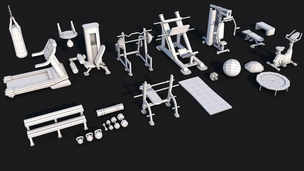 Items (x30):Tredmill, Spin Bike, Dumbbell Rack, Peck Deck, Swiss Ball, Yoga Mat, Leg Press, Leg Curl, Bosu Ball, Sppe Ball , Bar Bell, Core Roller, Bench, Squat Rack, Bench Press, Boxing Bag, Kettle Bell, Dumbbell