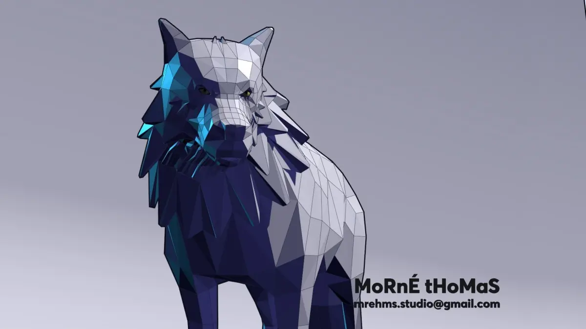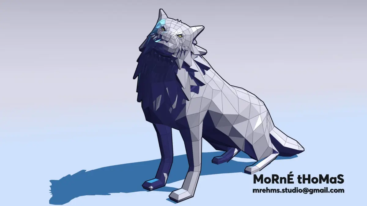 A simple polygon wolf. Freestyle setup in the native Blender file to have a thicker outline than the polygons. Includes a simple lighting setup. Rigged with IK on legs.