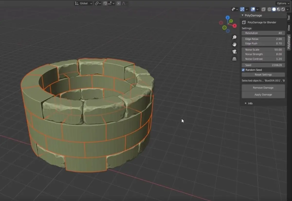 - PolyDamage quickly adds damage to corners and edges.