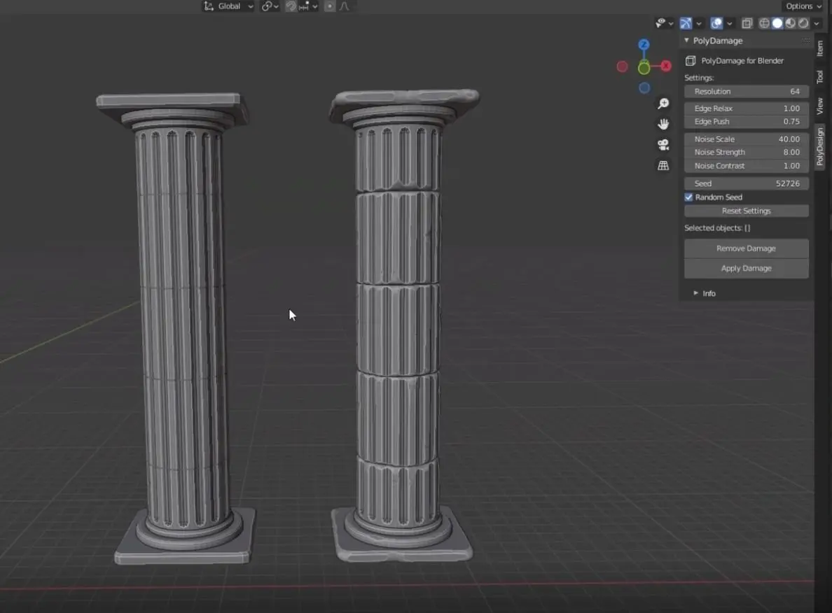 - PolyDamage is a quick alternative to manually sculpting damage with other software packages.