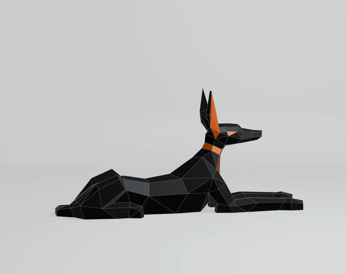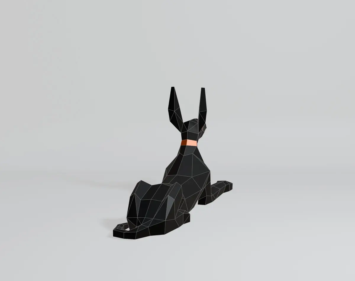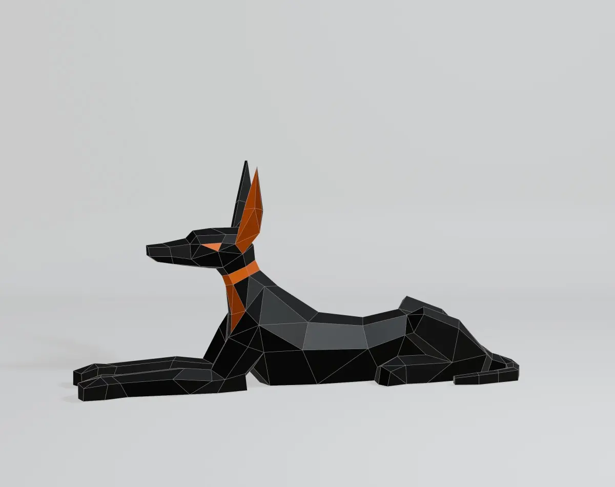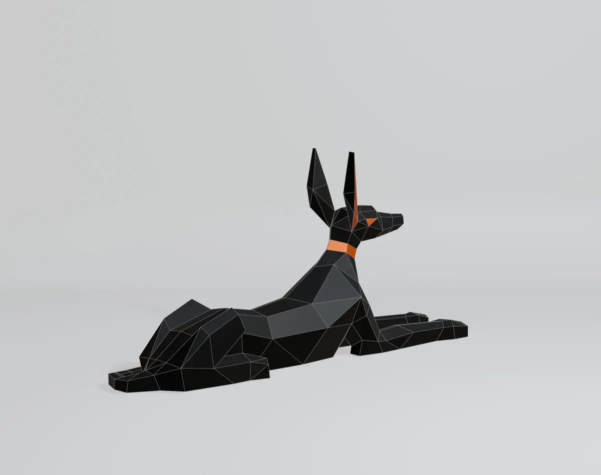 Welcome to my 3D world! I specialize in creating simple yet captivating geometric shapes. My latest creation is a geometric anubis dog god 3D model, designed with intricate polygonal and low-poly elements. Crafted in Blender 3D and rendered using EEVEE, this model features a base color material with no texture. It consists of 257 vertices, 567 edges, 321 faces, and 510 triangles, all with fully co-planar faces. The OBJ and Blend files are in the N-gon version, making it perfect for projects like 3D printing, papercraft, sheet metal sculptures, and CG applications. Thank you for checking out my model, and have a wonderful day!