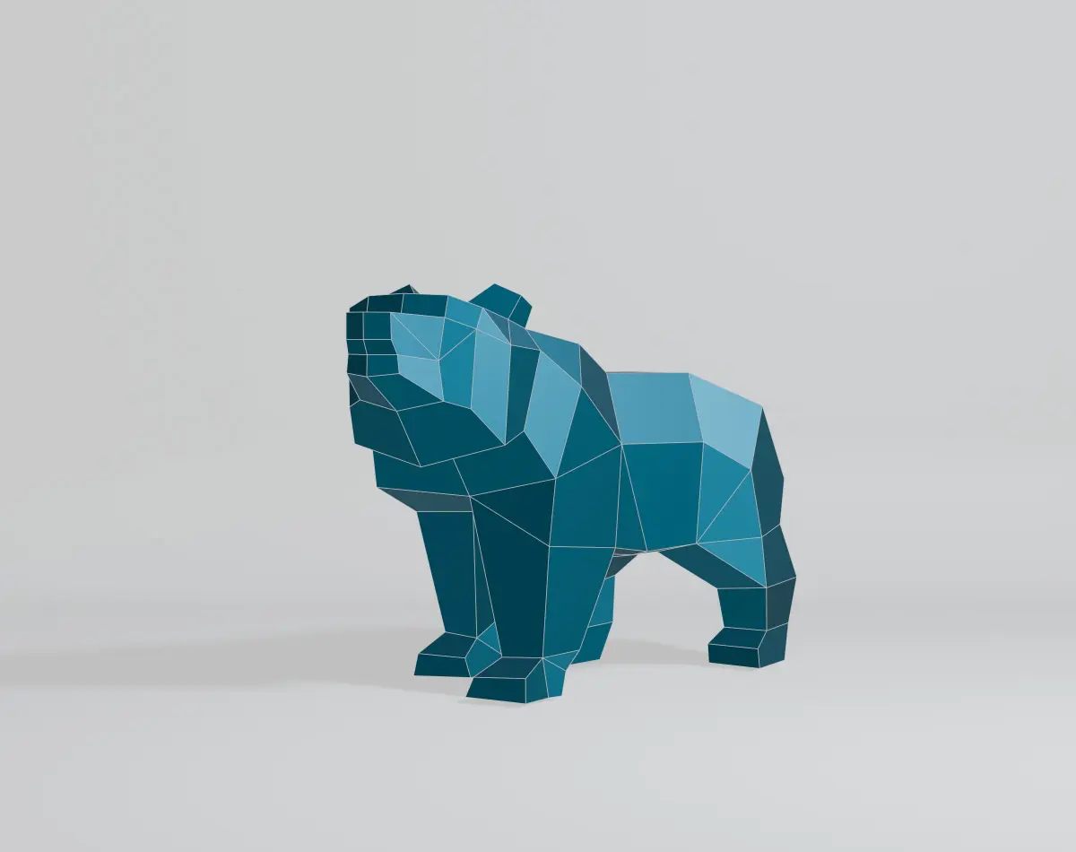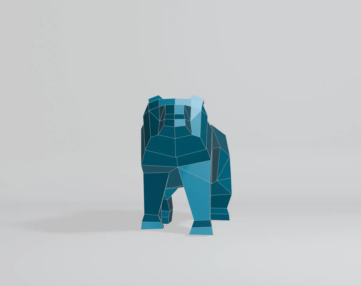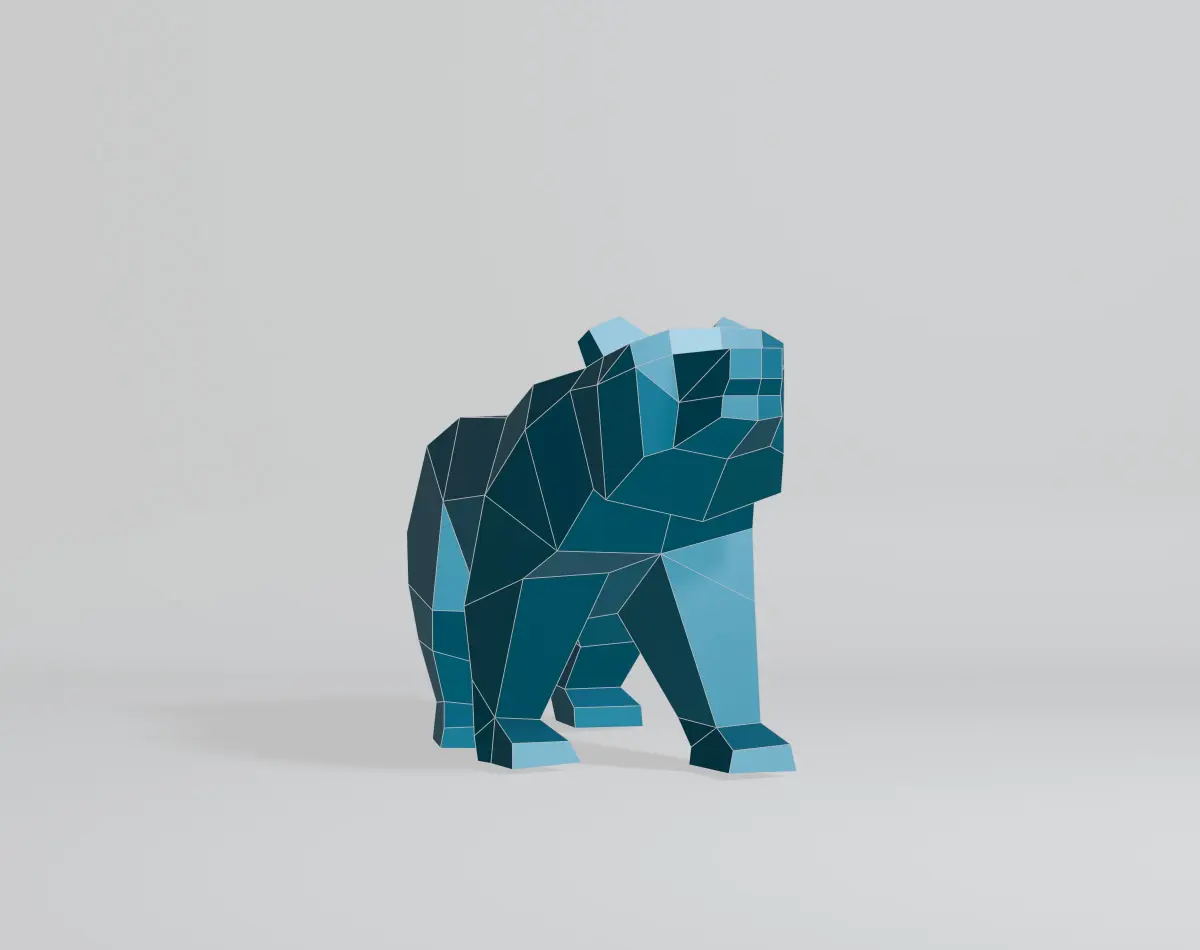 Welcome to my 3D world! I specialize in creating simple yet captivating geometric shapes. My latest creation is a geometric bear model, designed with intricate polygonal and low-poly elements. Crafted in Blender 3D and rendered using EEVEE, this model features a base color material with no texture. It consists of 163 vertices, 328 edges, 167 faces, and 322 triangles, all with fully co-planar faces. The OBJ and Blend files are in the N-gon version, making it perfect for projects like 3D printing, papercraft, sheet metal sculptures, and CG applications. Thank you for checking out my model, and have a wonderful day!
