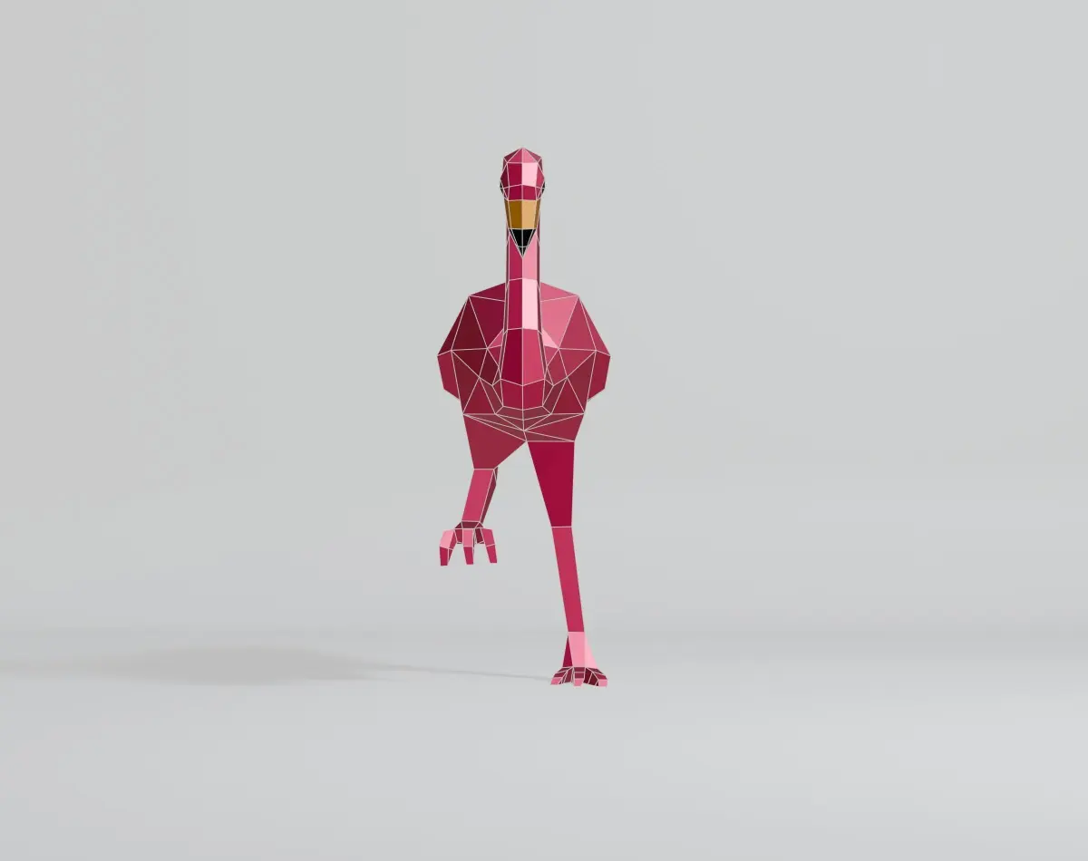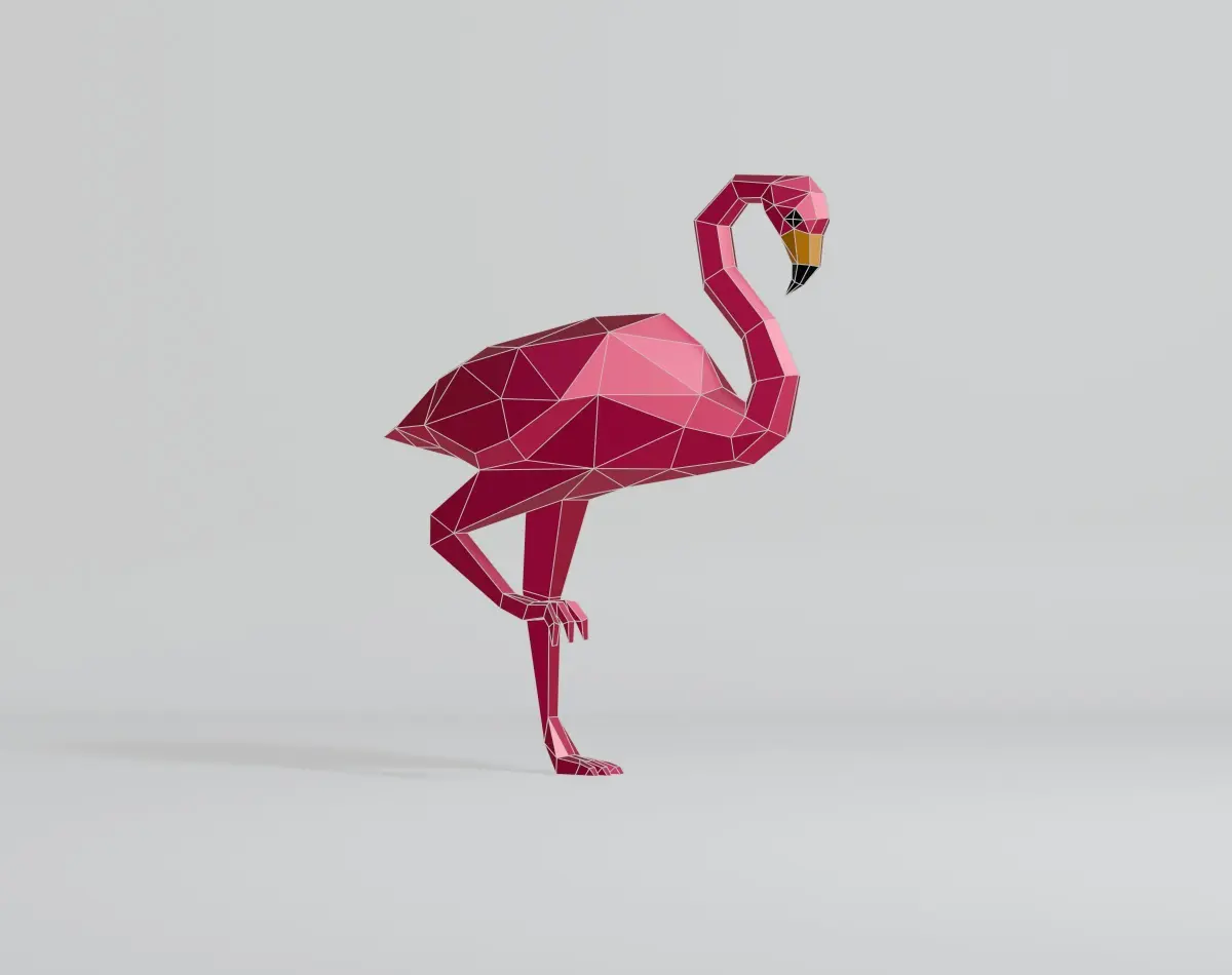 Welcome to my 3D world! I specialize in creating simple yet captivating geometric shapes. My latest creation is a flamingo geometric 3D model, designed with intricate polygonal and low-poly shapes. Crafted in Blender 3D and rendered using EEVEE, this model features a base color material with no texture. It consists of 234 vertices, 535 edges, 303 faces, and 464 triangles, with fully co-planar faces. Perfect for a variety of projects, including 3D printing, 3D papercraft, sheet metal sculptures, and CG applications. Thank you for checking out my model, and have a wonderful day!