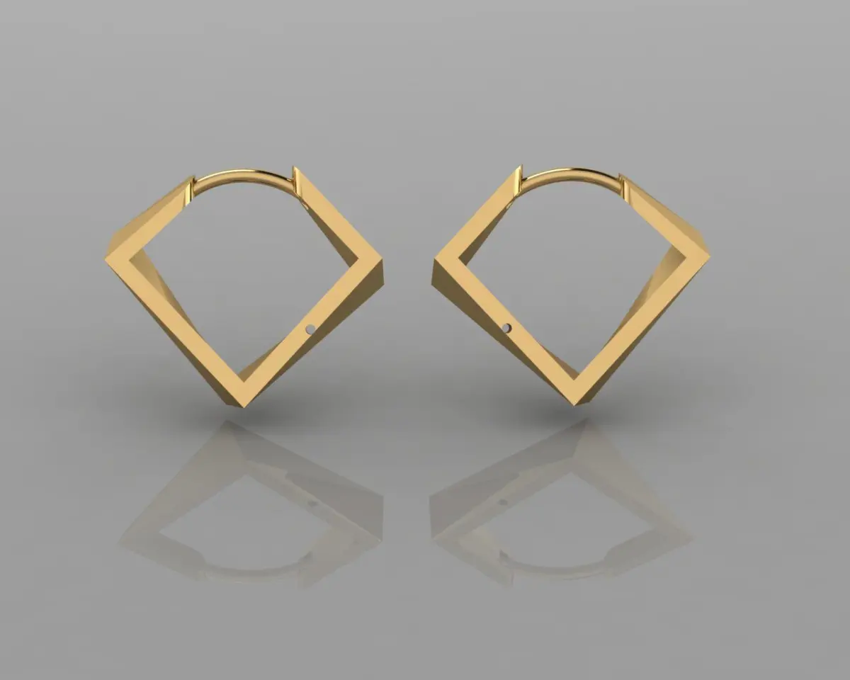 Very beautiful polygonal earrings.Precious Metal: 14 Karat Yellow GoldHeight: 17.0 mm*Width: 19.7 mm* Thickness: 2.0 mm*Weight: 4.3 grams**All weights and measurements are approximate.made Suitable for gold and silver material.Shape within shape.Large goldplated, silver, geomtric hoop earrings. Handmade massive silver earrings, approx. 6 cm long. Handmade to order. Free delivery in Norway. The mysteries and logic of geometry in elegant form.These truly are earrings for the discerning nerd - whether mathematician or not.