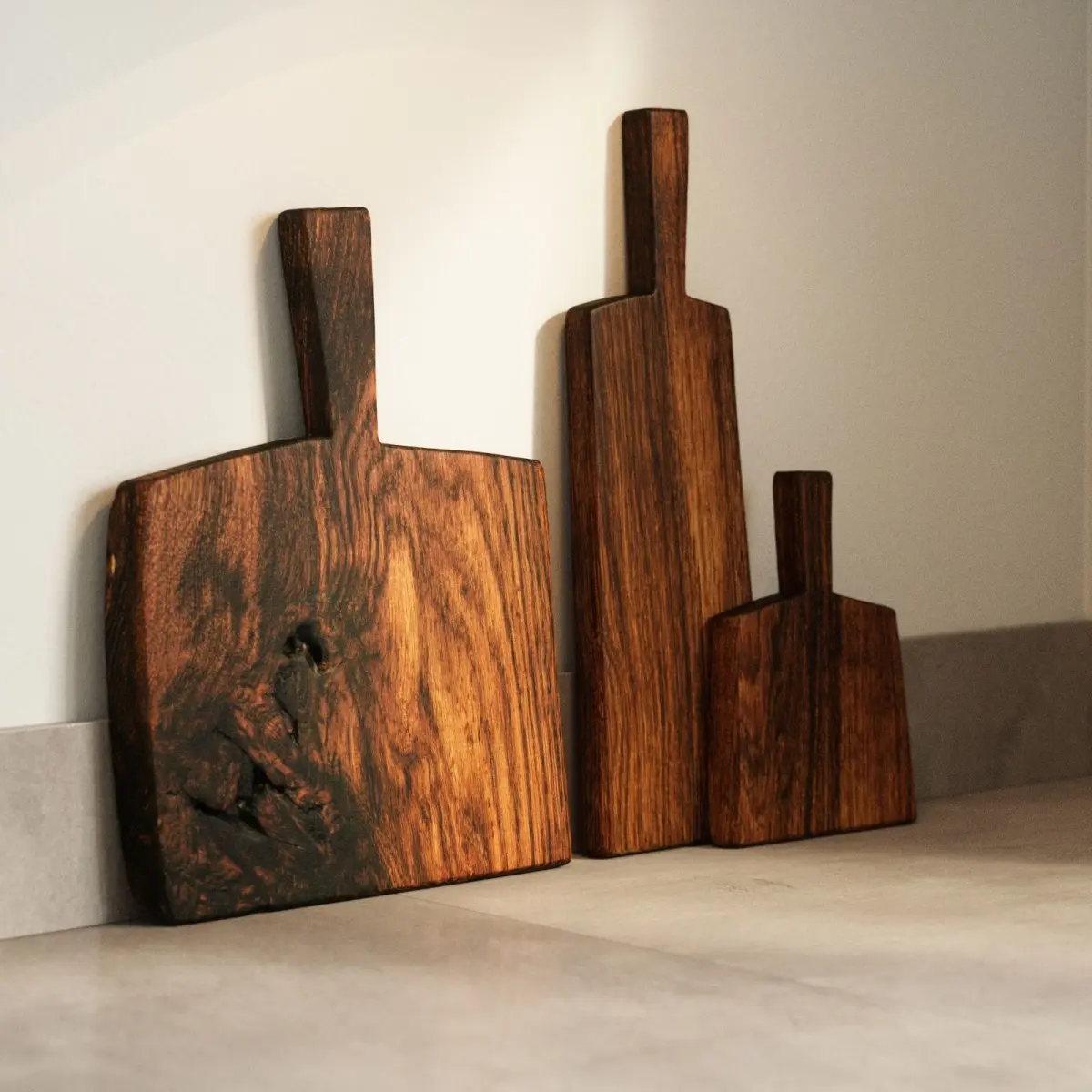 We have a set of 5 cuttingboards in differenz sizes and some are clean and some more rustical.