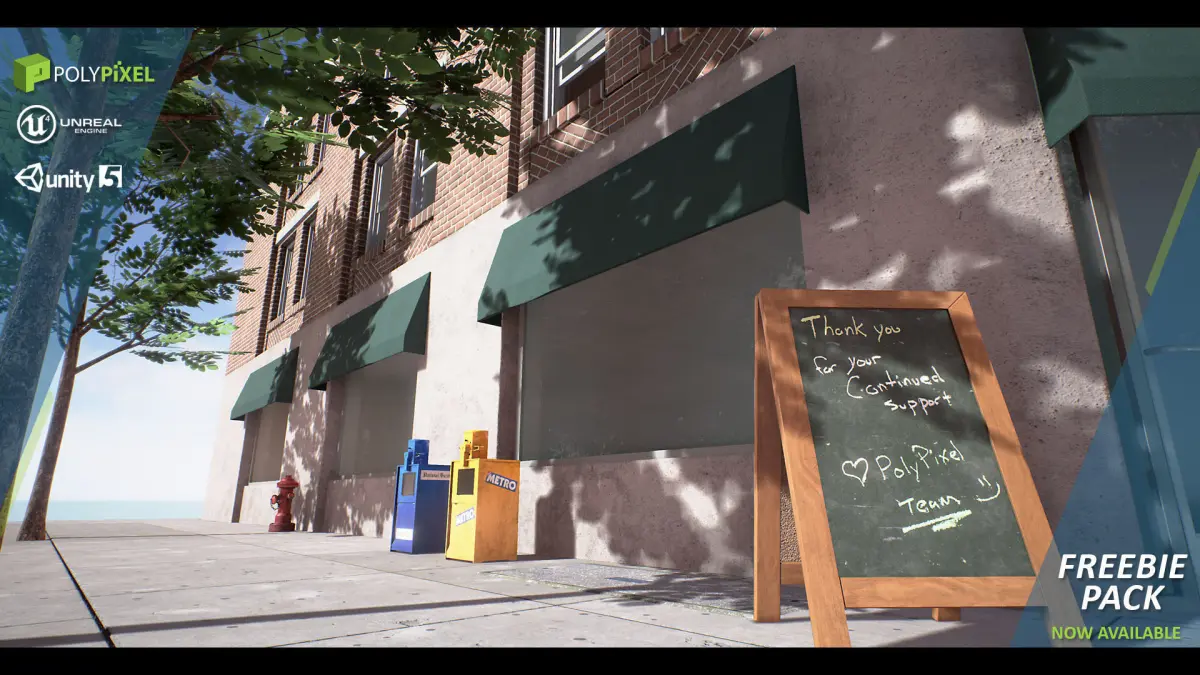 ==================================================================================================Features:- Ability to create multi-level floors with interiors – we give you both modular and hyper modular pieces that can be mixed and match to create an endless variety of buildings- High Quality Props & Foliage – easily drag and drop pieces to create a coastline city- LOD (level of detail) states for trees & props – allows for a more streamlined game that doesn’t bog down from a distance