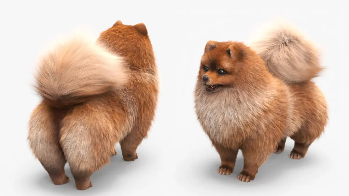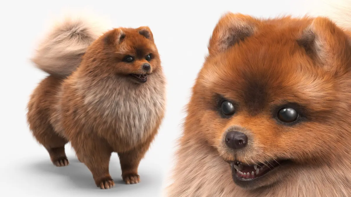 Pomeranian Spitz Dog Orange Fur for Cinema 4D is a three-dimensional model of Pomeranian Dwarf Spitz dog which is a miniature Spitz-type companion breed.