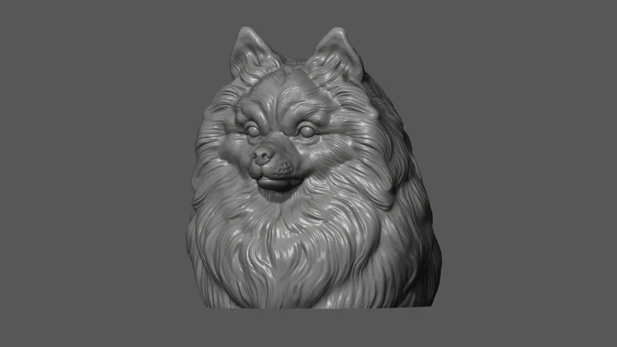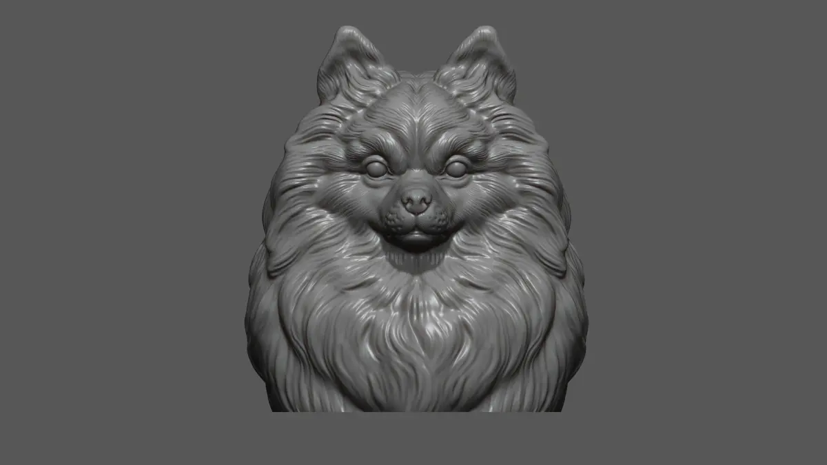 500K STL, OBJ triangulated, Pomeranian with a closed mouth on the wall
