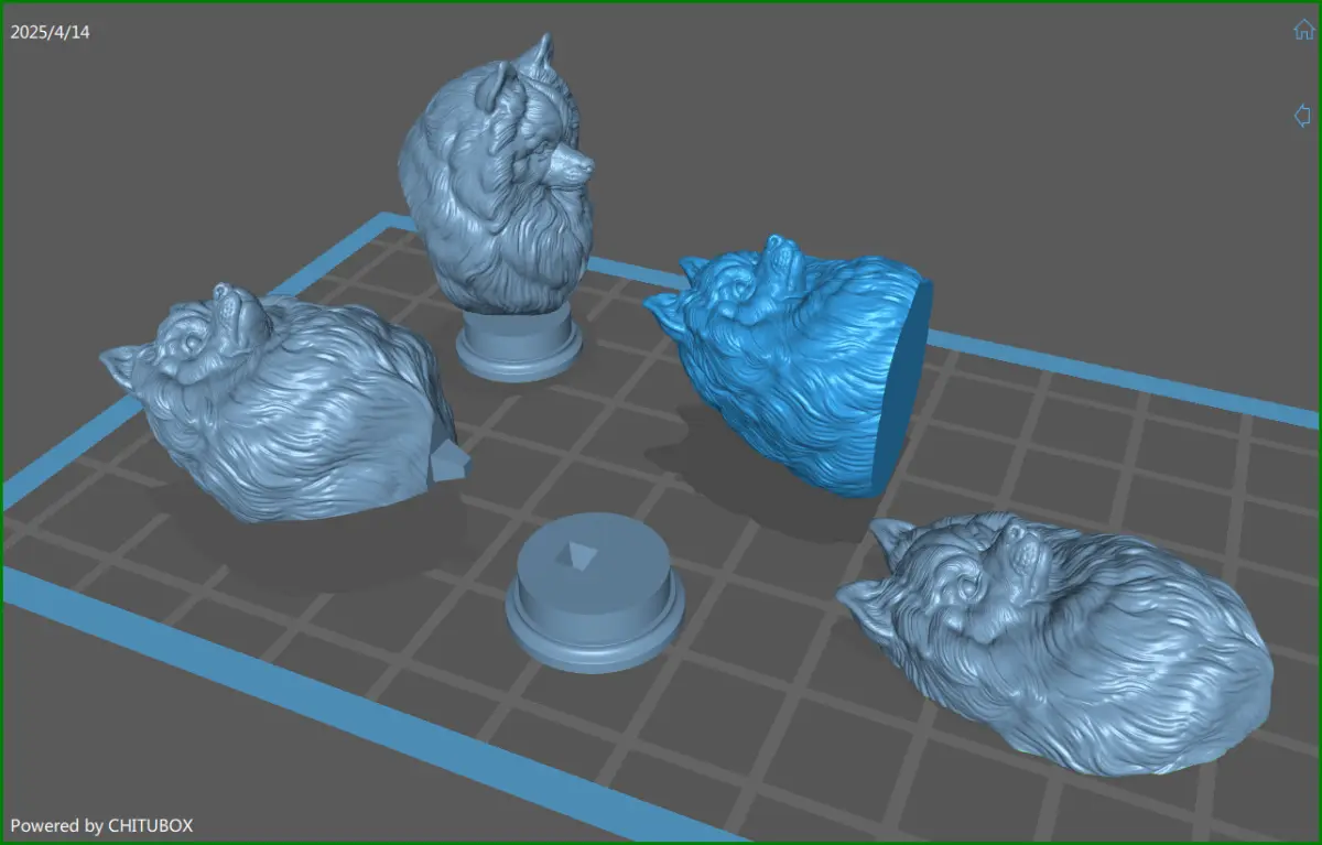 520K STL, OBJ triangulated, Pomeranian with a closed mouth on the base in parts