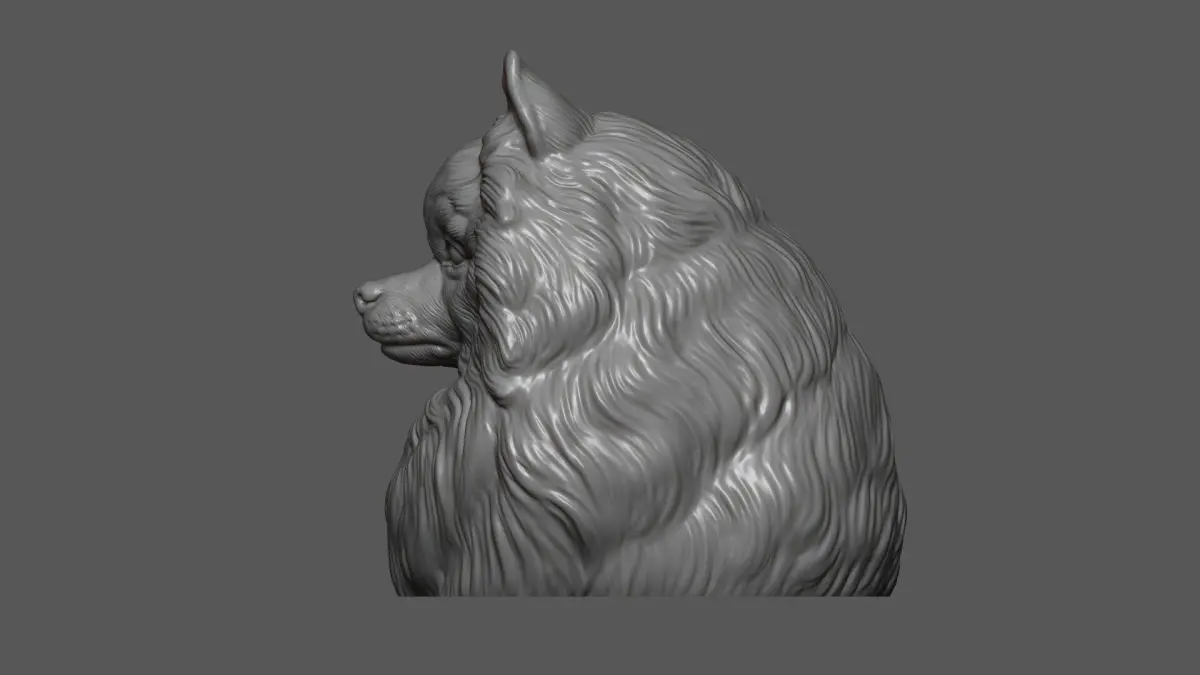 500K STL, OBJ triangulated, Pomeranian with a closed mouth is cut off from the bottom