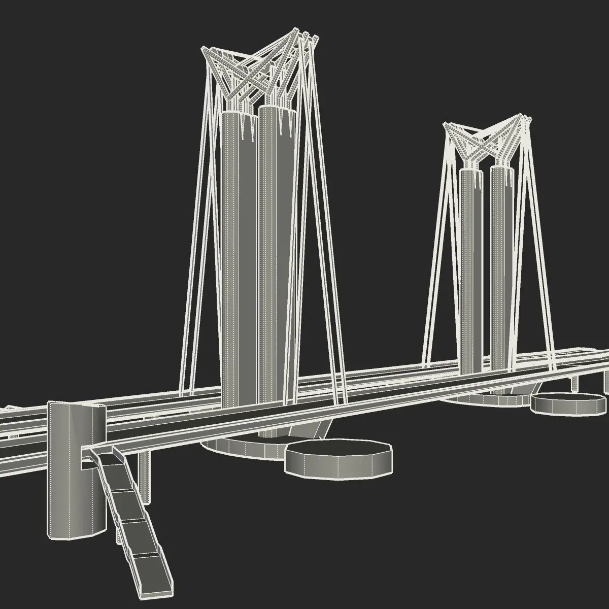 The "Pont Flaubert" is a modern concrete lift bridge. The model is correctly geo referenced on Rouen, Upper-Normandy (France).