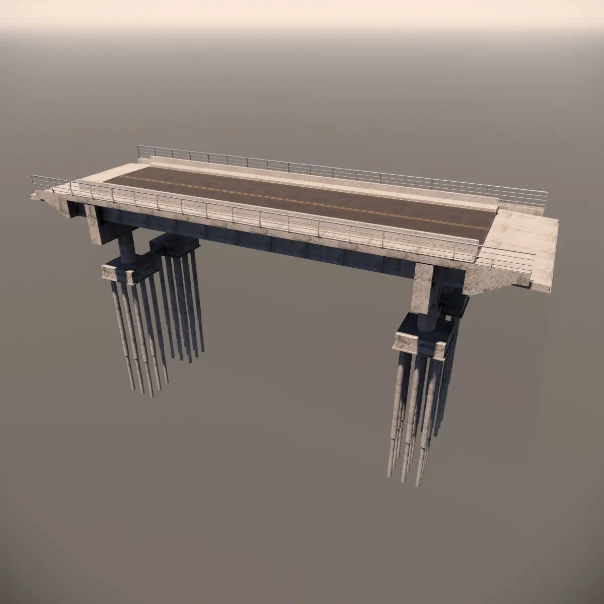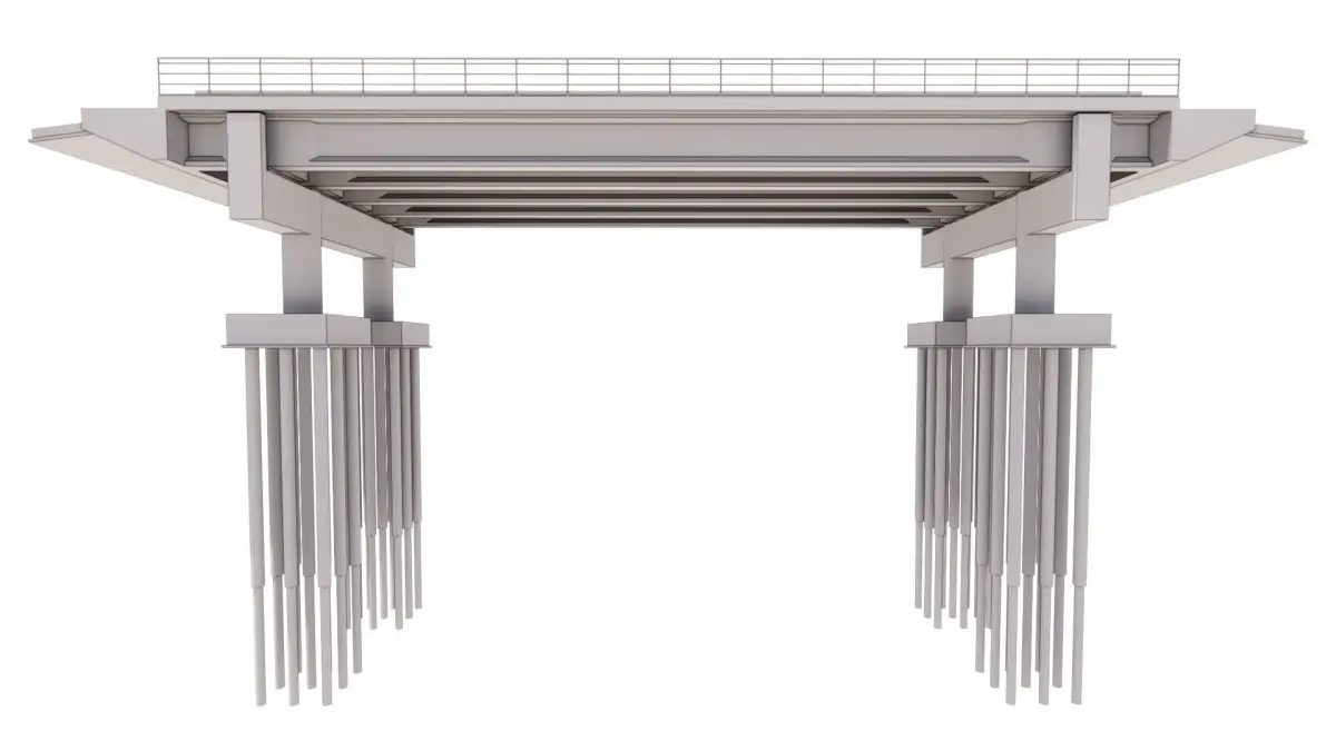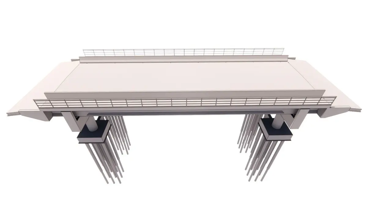 Ponte em concreto armadoTabuleiro medindo 12,00 m de largura por 30,00 m de comprimentoVão entre eixos dos pilares no sentido longitudinal de 25,00 mVão entre eixos dos pilares no sentido transversal de 6,00 m05 vigas longarinas tipo I com altura de 1,50 m e 29,50 m de comprimento09 estacas tipo raiz em cada bloco04 pilares de seção circular com diâmetro de 1,20 m e 2,70 m de altura04 blocos de fujdação medidndo (3,20x3,30) m com altura de 1,00 m02 cortinas tipo L nas cabeceiras travando as vigas longarinas04 alas com espessura de 25 cm para contenção do solo nas cabeceiras Lajes de aproximação com largura de 4,00 m em ambas as cabeceiras da ponteGuarda-corpo metálico am ambas as laterais da ponte