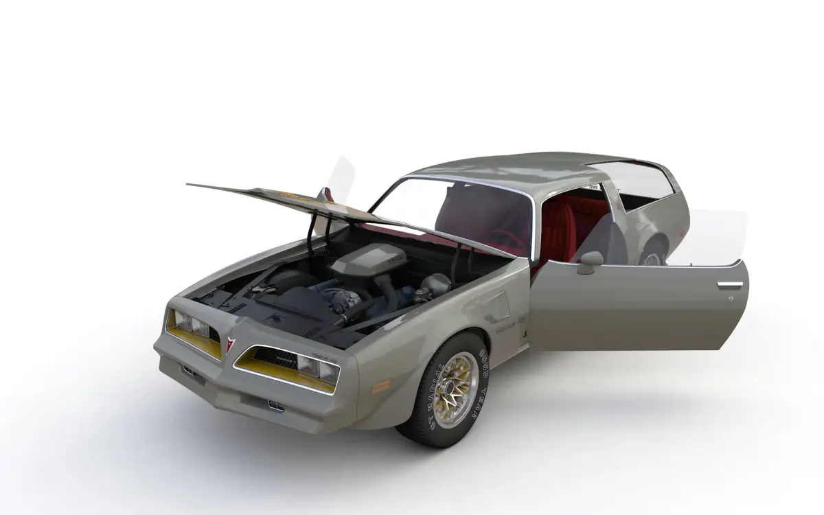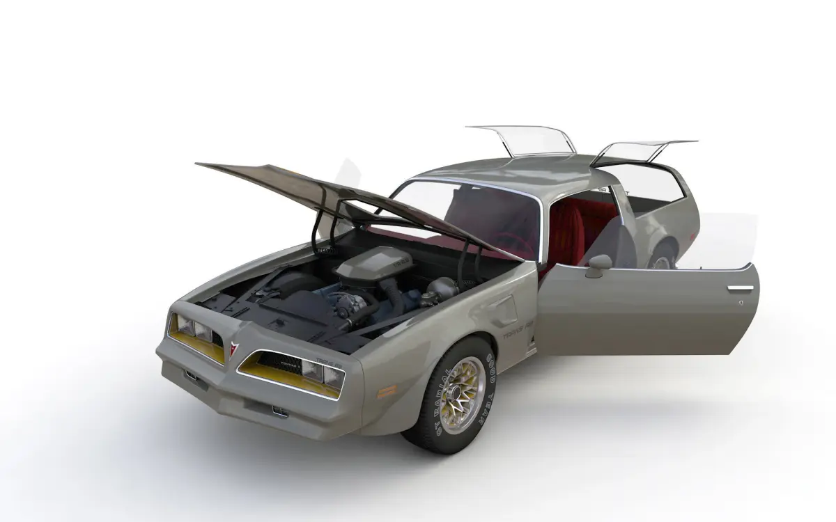 High detailed 3D model Pontiac Firebird Trans Am Type K 1977 Concept , from inside and outside.