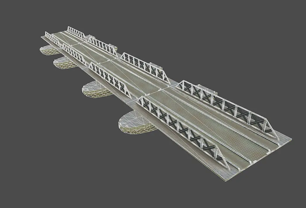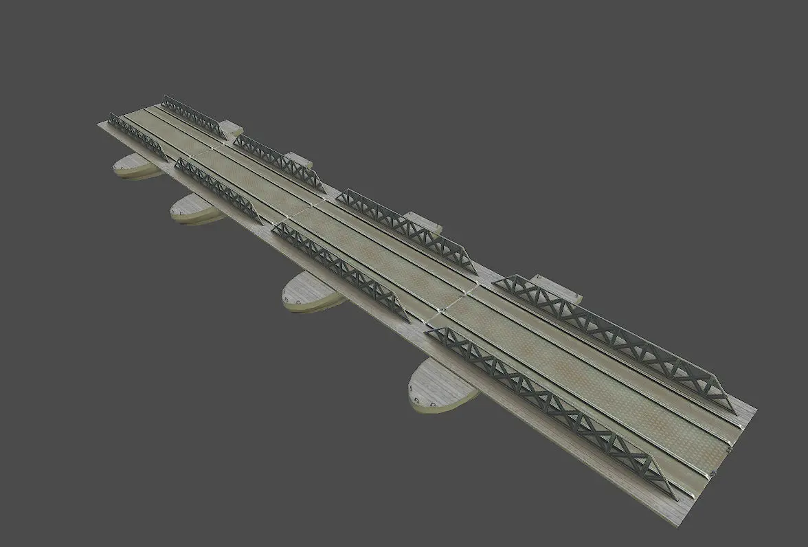 Low poly game model of a pontton bridge with diffuse, specular and normal mapping.