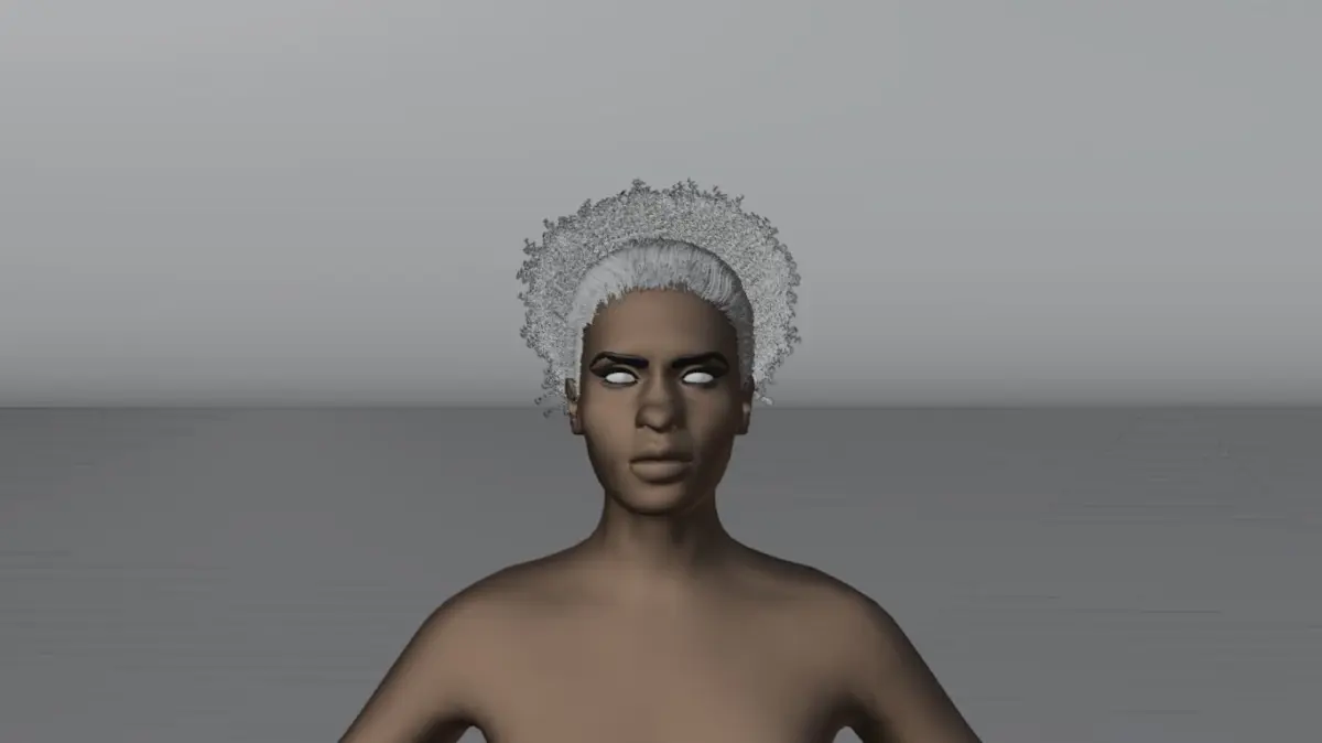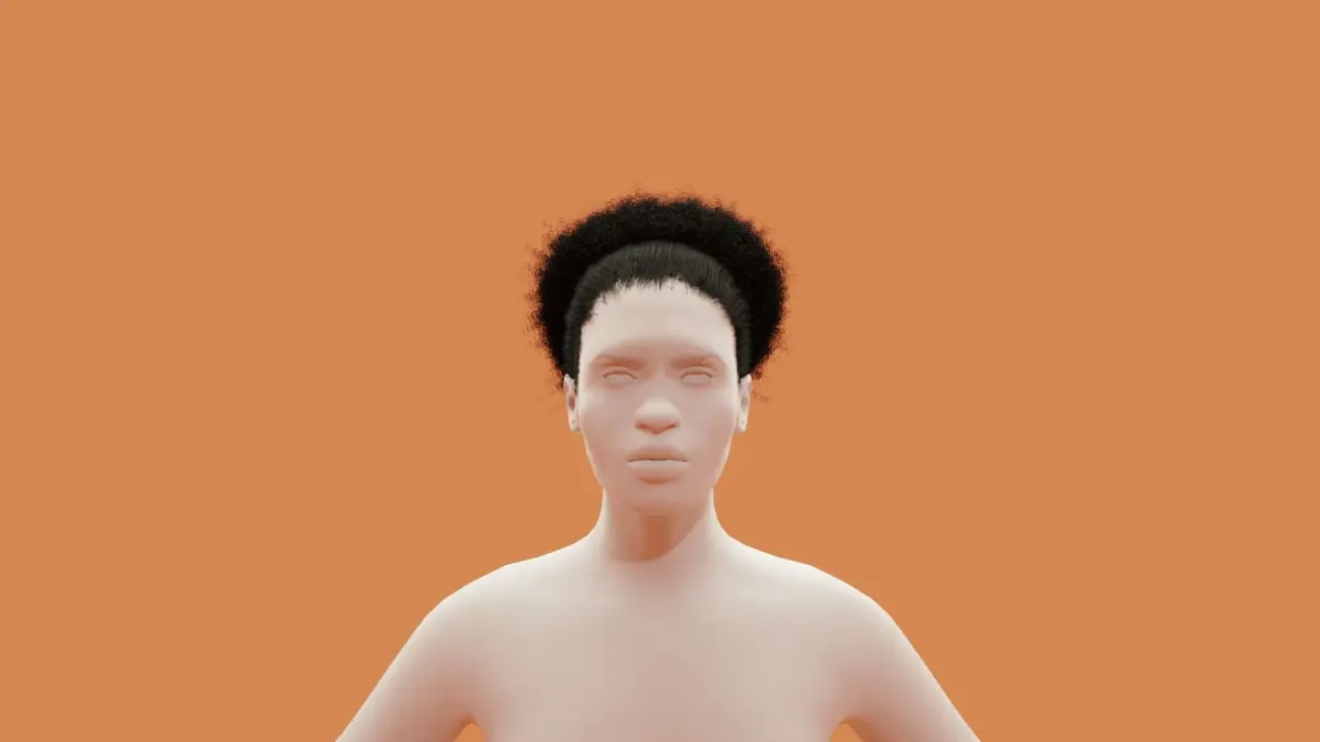 The Female base is made up of multiple objects, including a scalp object that is the hair emitter for both the PUFF and COMBED BACK particle system.