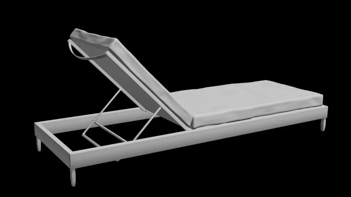 Pool chaise long lounge chair.Leather cushions and polished dark wood, and a metallic galvanized plate.