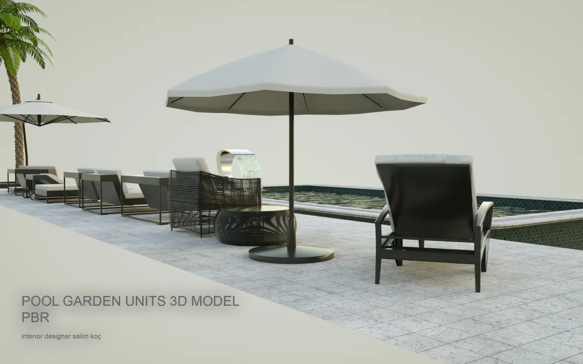 havuz oturmahavuz şezlongşemsiyehavuzpalimiye ağacından oluşan güzel bir tasarım set.